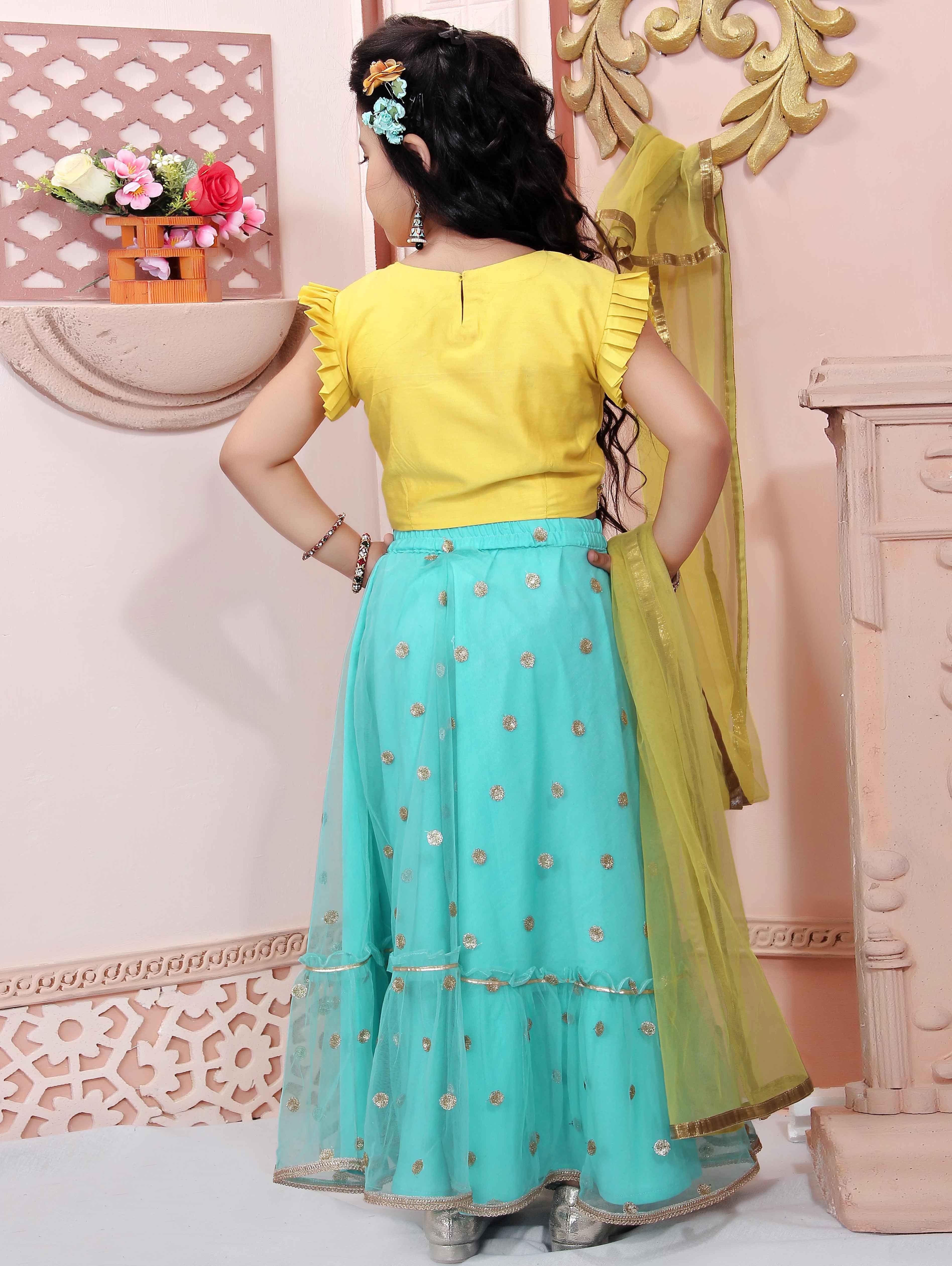 Explore in english - Blue Cotton Silk Lehenga Choli with Designer Sleeved Blouse