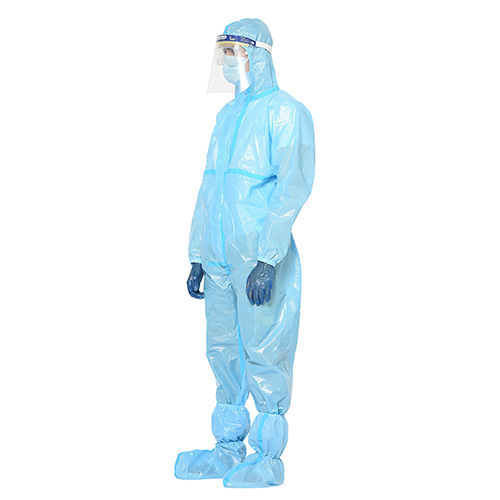 टेप के साथ ब्लू डिस्पोजेबल कवरल (फेस शील्ड और गॉगल्स के साथ)