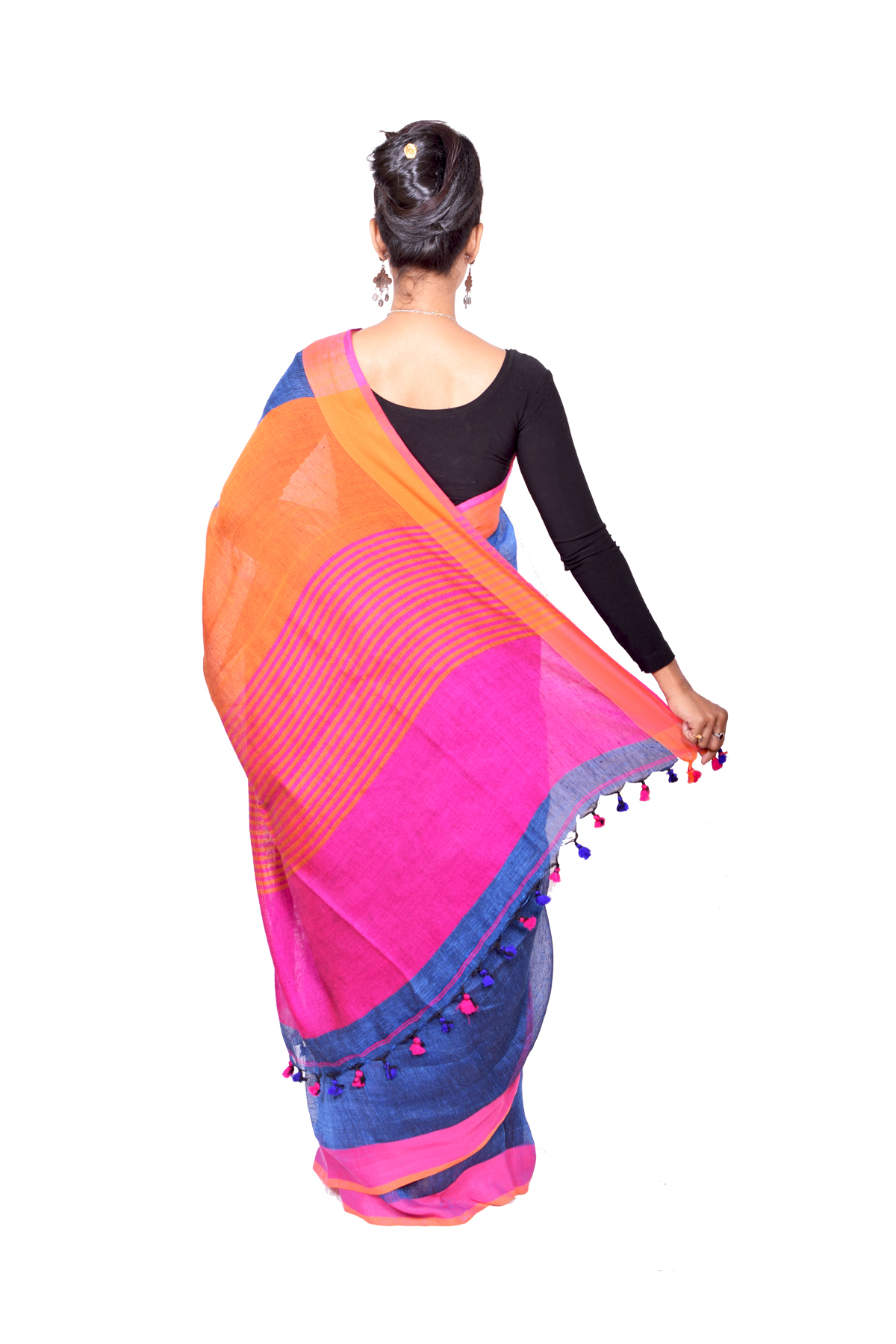 बुना हुआ नीला सादा लिनन साड़ी