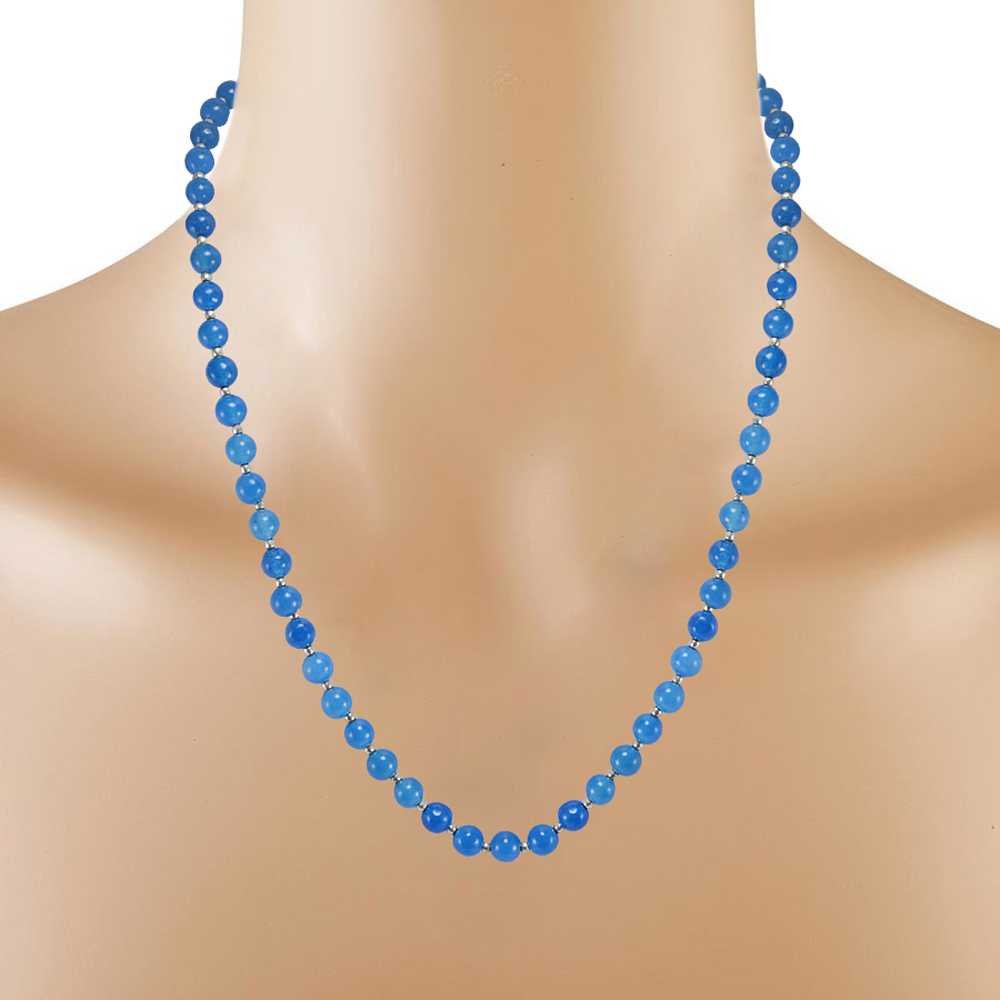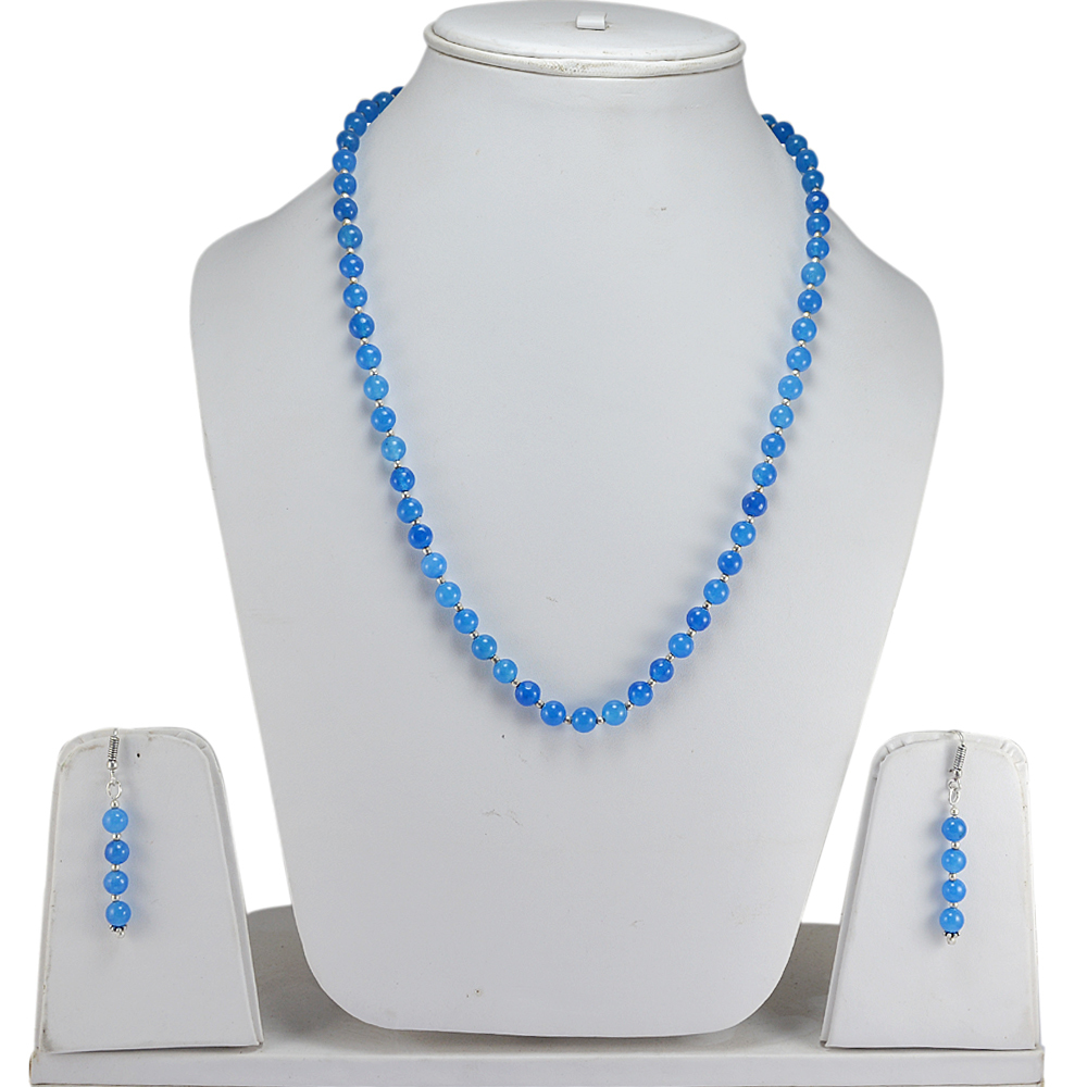 ब्लू क्वार्ट्ज स्टोन सिल्वर नेकलेस सेट Pg-156667 आकार: 0.6x47 Cm.