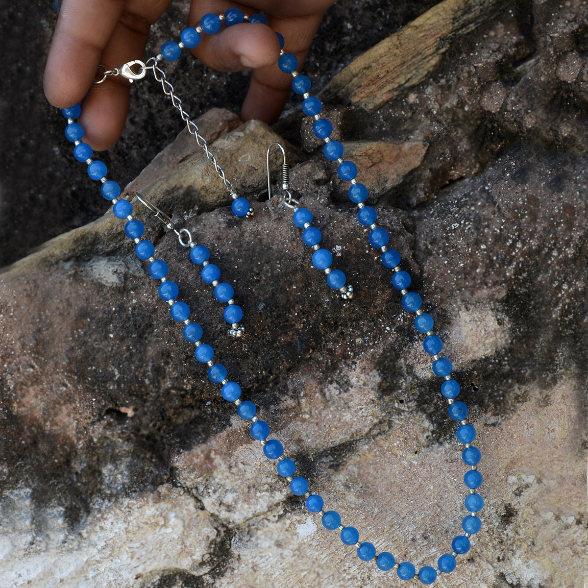 Explore in english - Blue Quartz Stone Silver Necklace set PG-156667