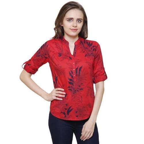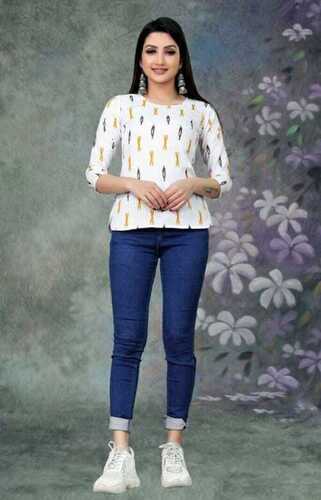प्लेन ब्लू वुमन वेस्टर्न कॉटन प्रिंटेड टॉप