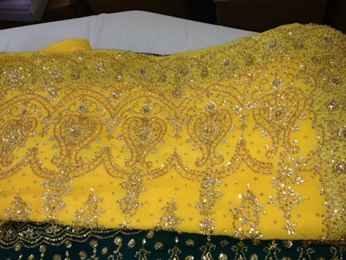 ग्रीन-येलो डिजिटल सीक्वेंस लेडीज़ डिज़ाइनर साड़ी