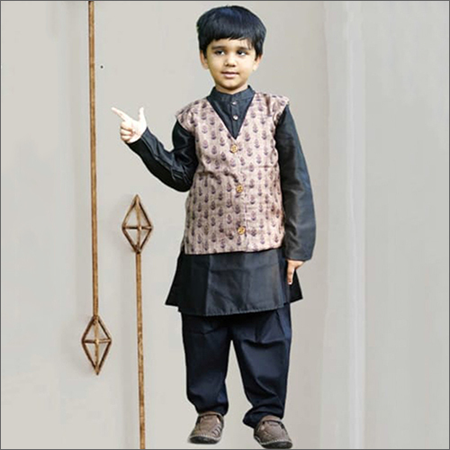 क्विक ड्राई बॉयज़ ग्रीन कुर्ता और मस्टर्ड जैकेट कुर्ता सेट