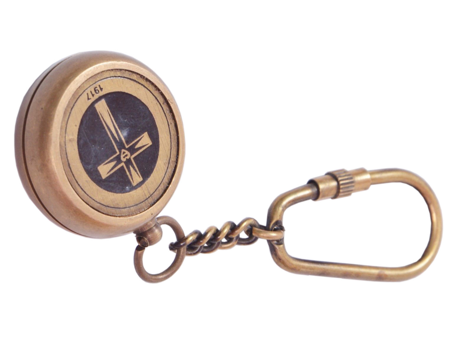 ब्राउन ब्रास एंटीक कम्पास की-चेन