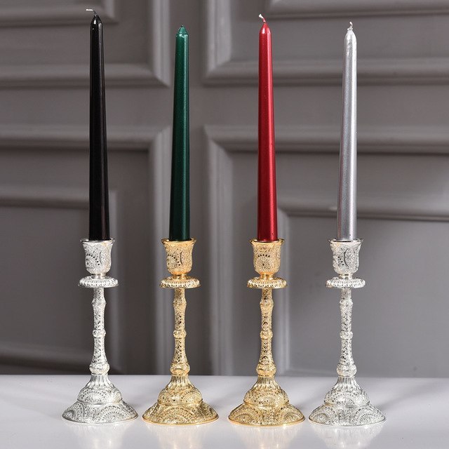 कांसा सुंदर उत्कीर्ण चमकता हुआ मोमबत्ती होल्डर
