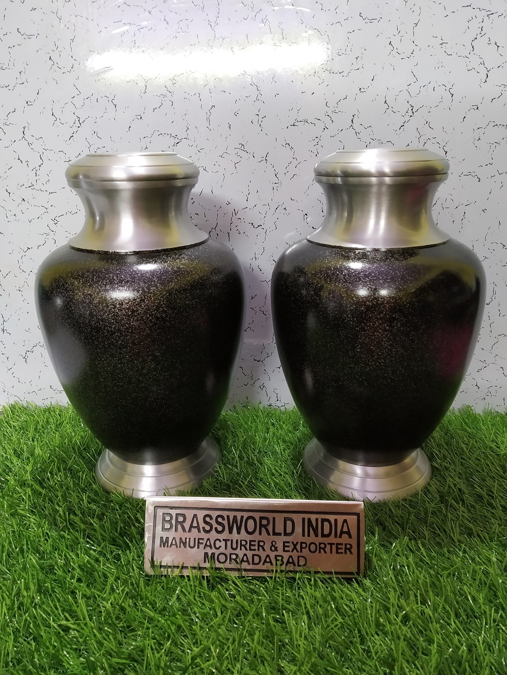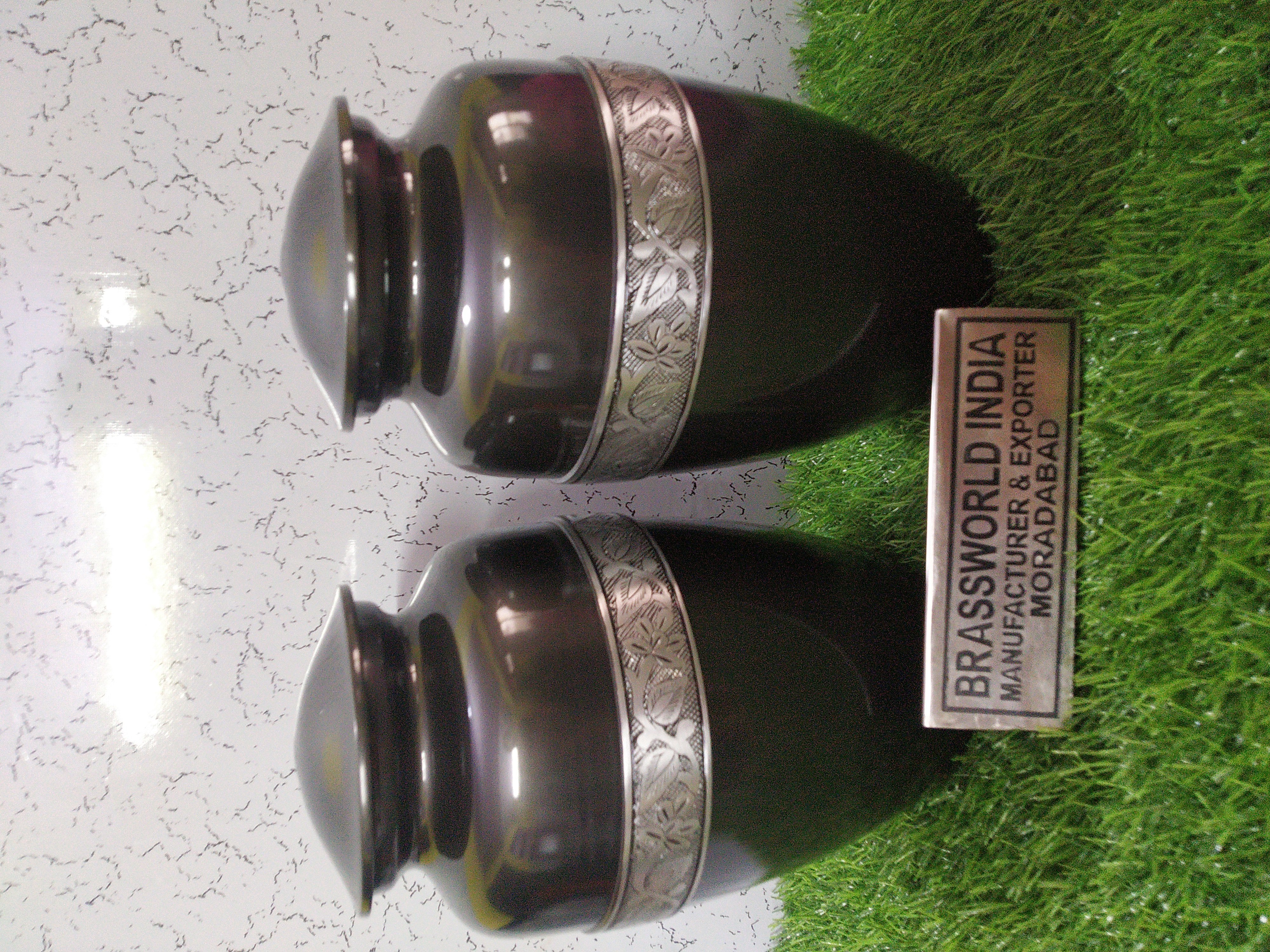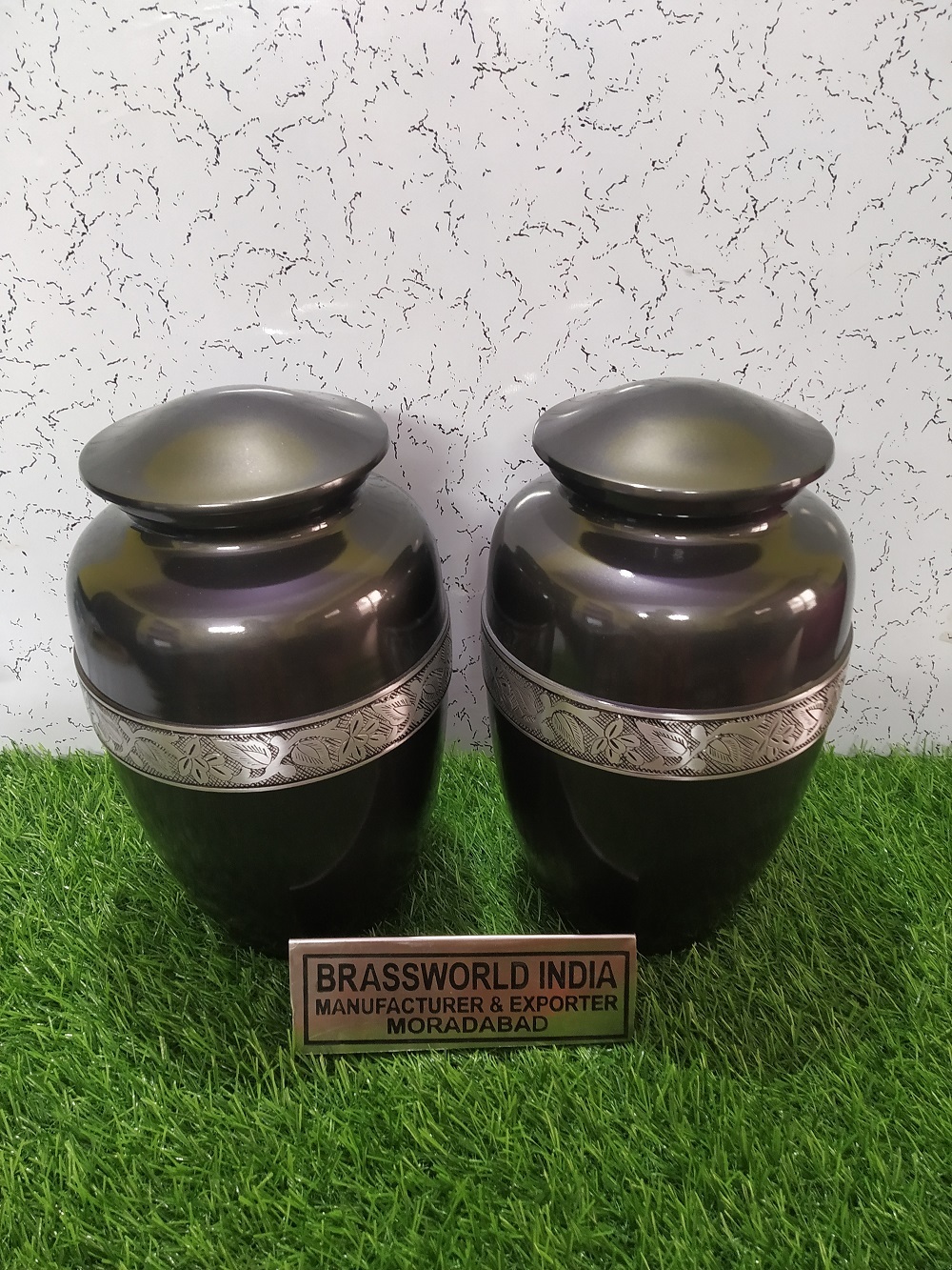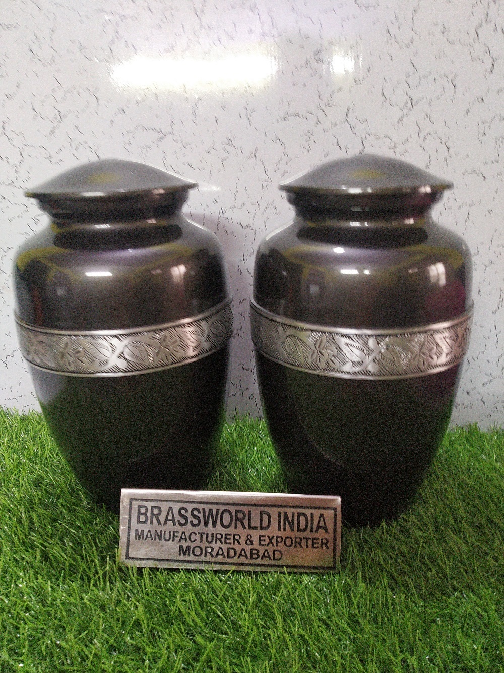 सफेद पत्तों के साथ पीतल का काला श्मशान कलश