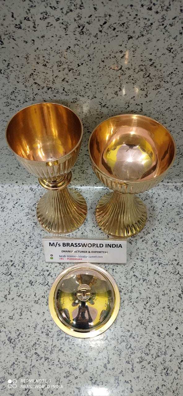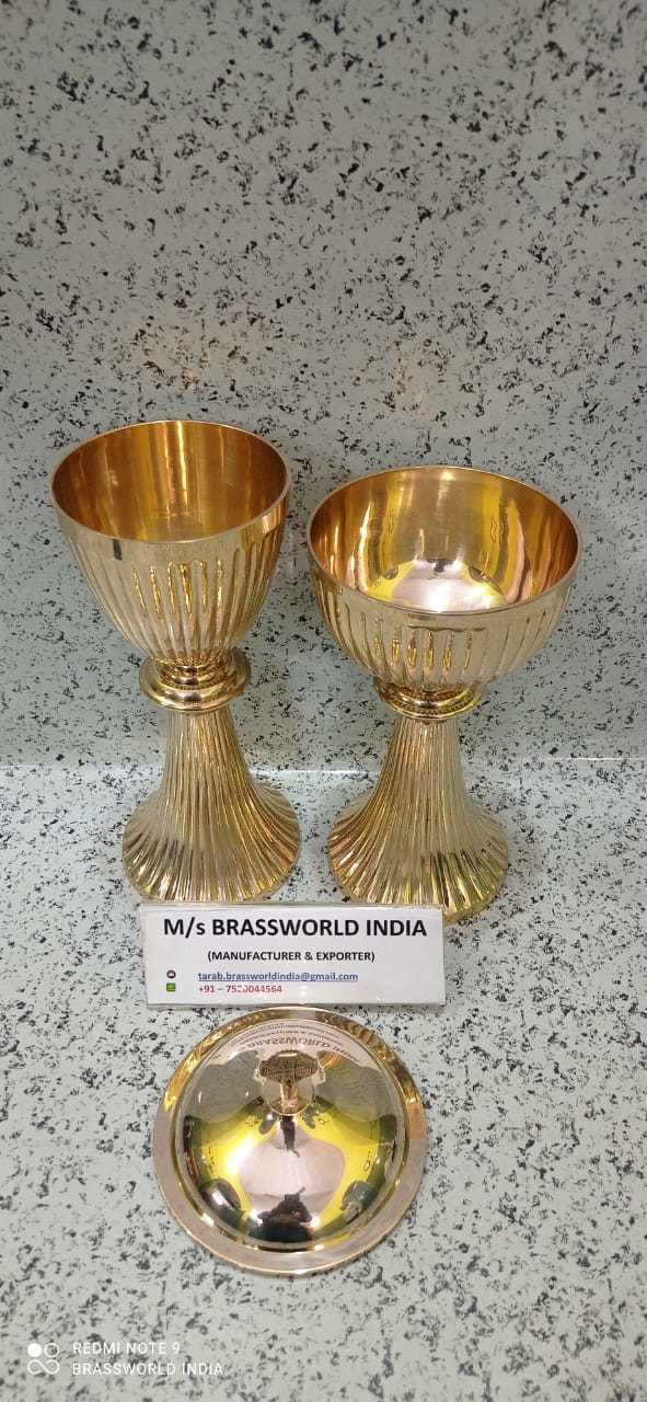 दो चर्च आपूर्तियों के पैटन सेट के साथ पीतल का प्याला और सिबोरियम