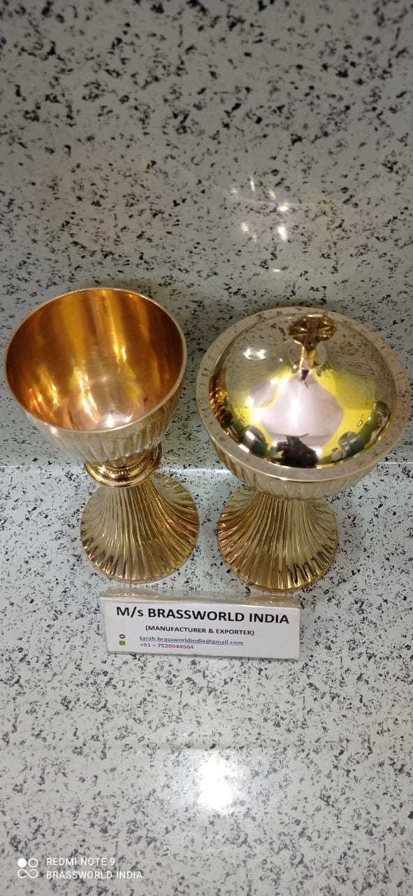 दो चर्च आपूर्तियों के पैटन सेट के साथ पीतल का प्याला और सिबोरियम