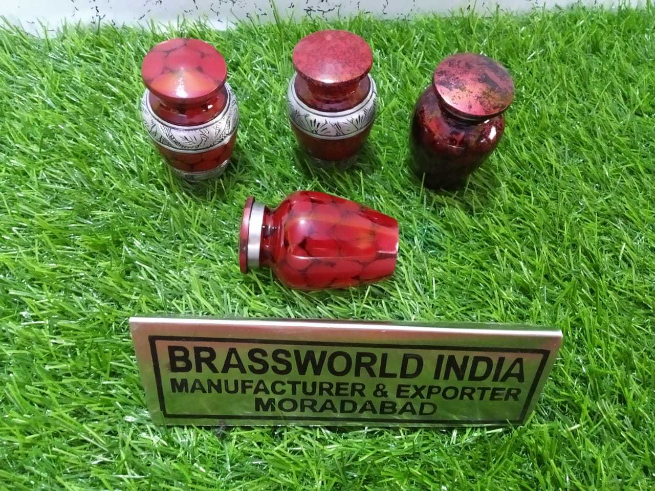 पीतल के विभिन्न प्रकार के लाल उत्कीर्ण कलश अंतिम संस्कार की आपूर्ति