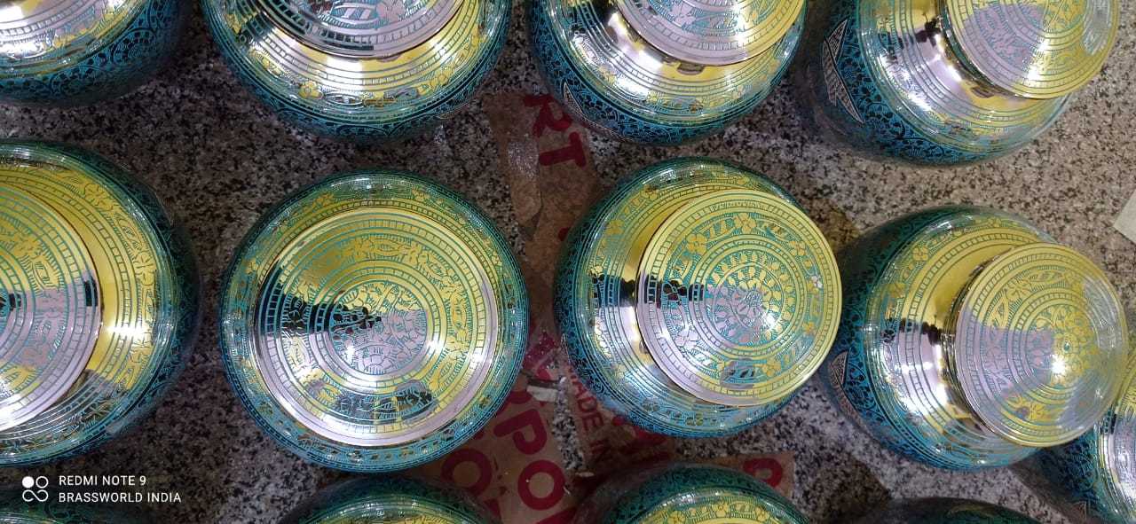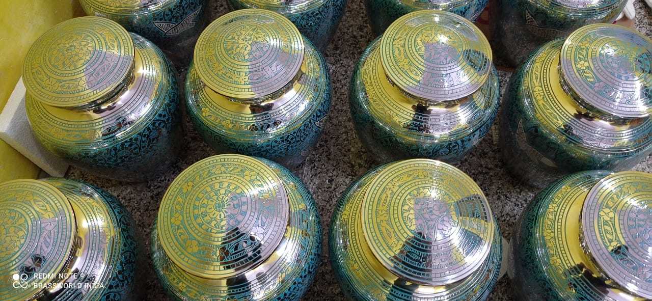 पीतल पर उत्कीर्ण हरा अंतिम संस्कार कलश
