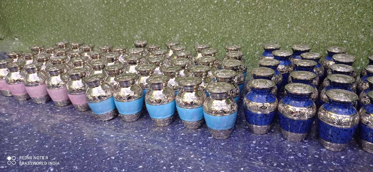 Explore in english - BRASS ENGRAVED WITH GREEN COLOUR KEEPSAKE CREMATION URN FUNERAL SUPPLIES