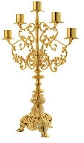 ब्रास फाइव एआरएम यूनीक स्टाइल कैंडल होल्डर चर्च सप्लाई