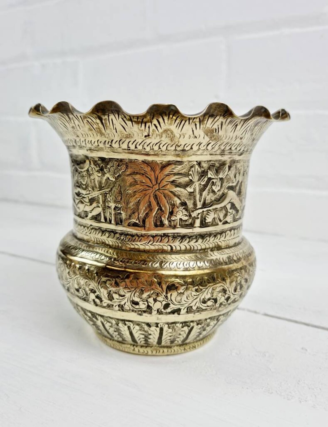 Explore in english - BRASS GRAPES ENGRAVED PLANTER