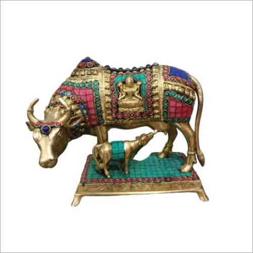 पीतल कामधेनु गाय और बछड़े की प्रतिमा