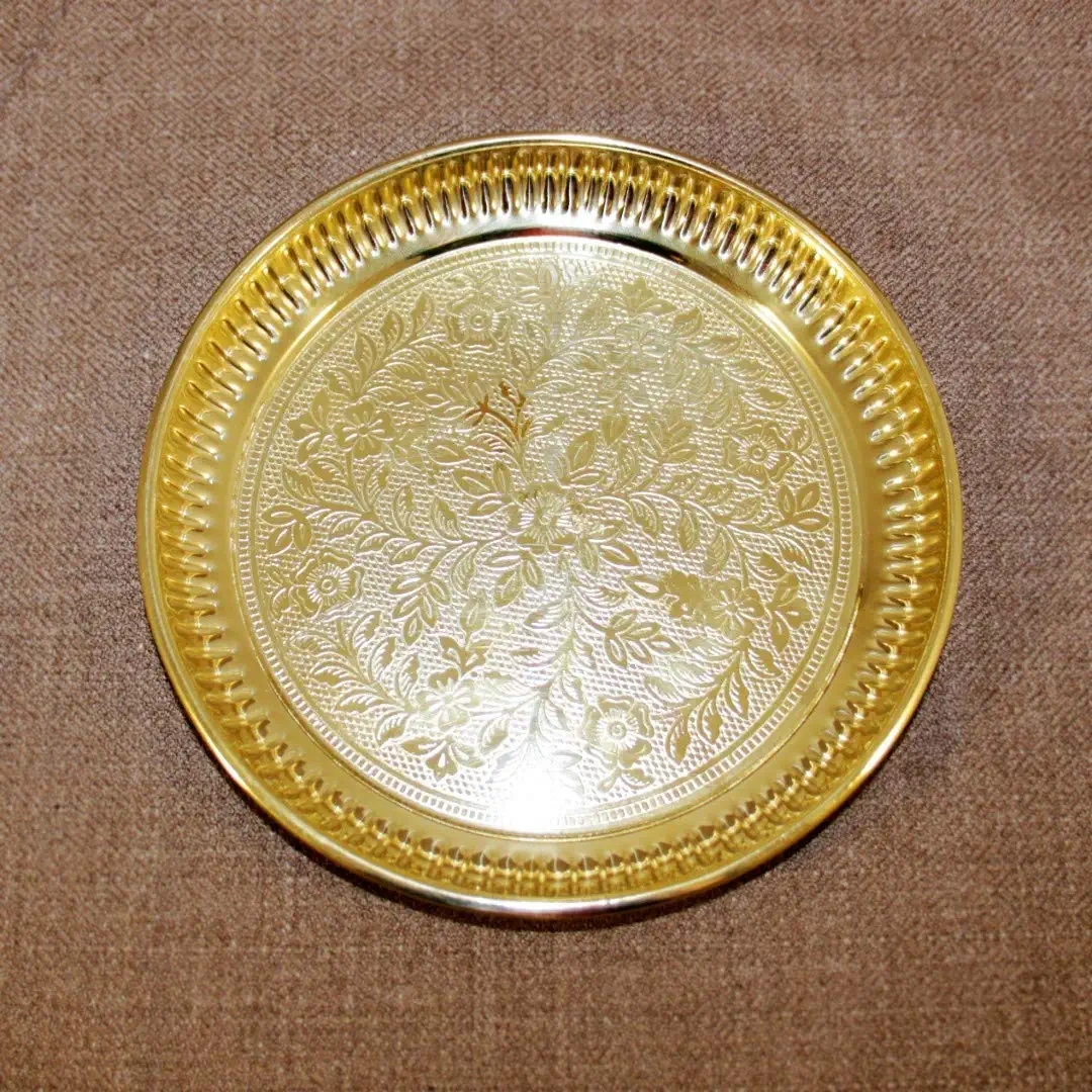 घर और ऑफिस की सजावट के लिए कांसा पूजा थाली गोल्ड प्लेटेड फ्लावर एम्बॉस्ड डिज़ाइन के साथ (1)