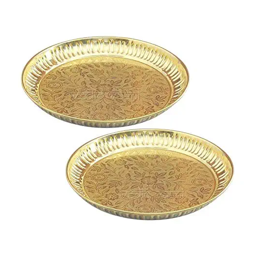 - घर और ऑफिस की सजावट के लिए कांसा पूजा थाली गोल्ड प्लेटेड फ्लावर एम्बॉस्ड डिज़ाइन के साथ (1)