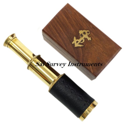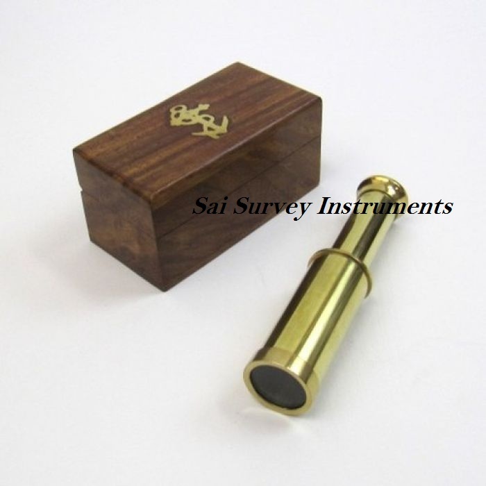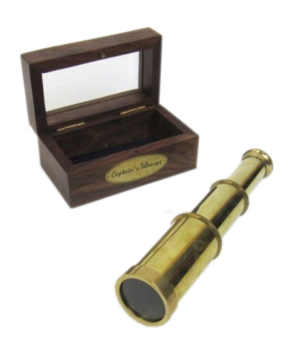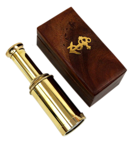 लकड़ी के बक्से के साथ ब्रास पुलआउट टेलीस्कोप नॉटिकल रिट्रैक्टेबल टेलीस्कोप 4 इंच ब्रास टेलीस्कोप मरीन पाइरेट गिफ्ट