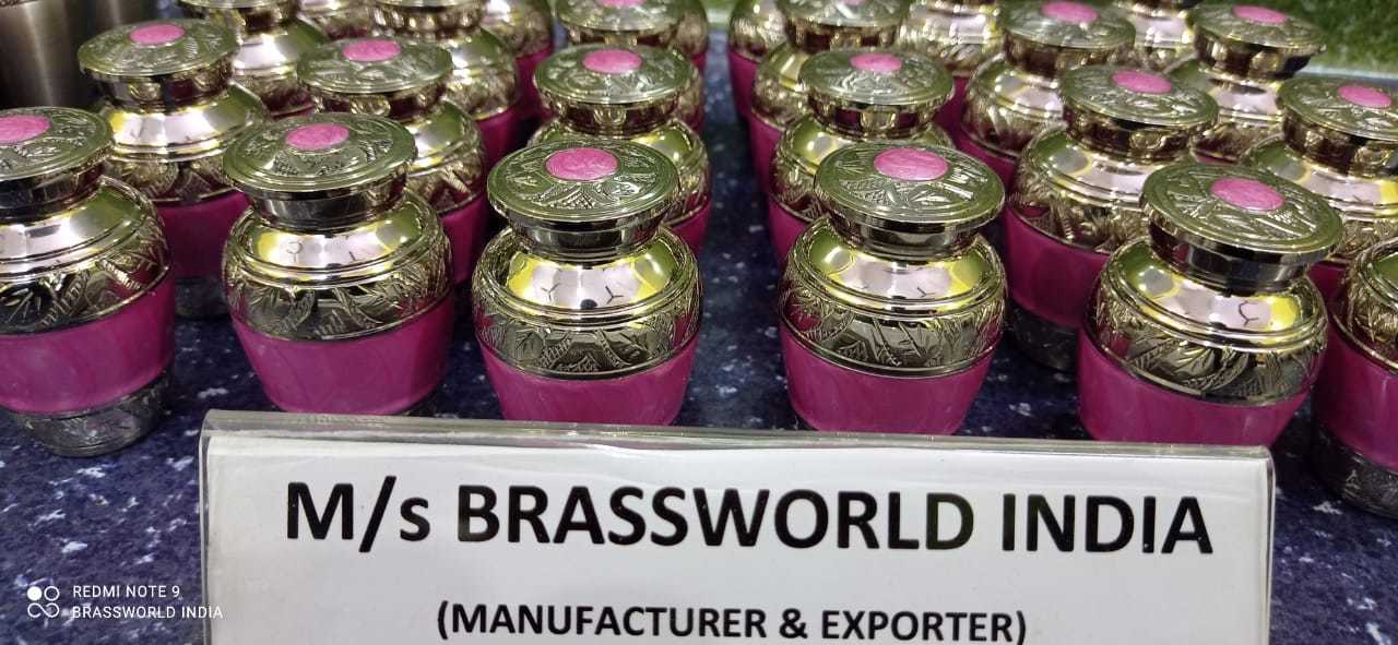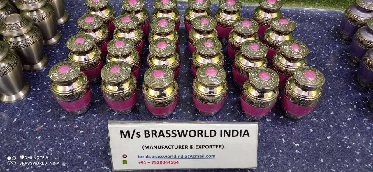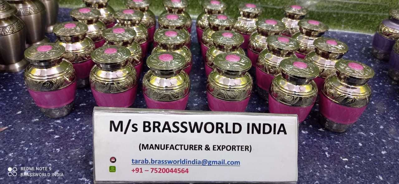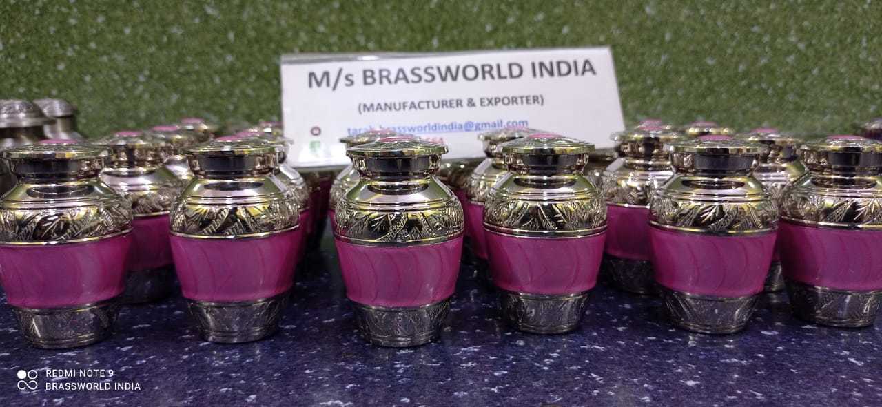 Explore in english - BRASS PURPLE PAINT SILVER FULL ENGRAVED MINI CREMATION URN