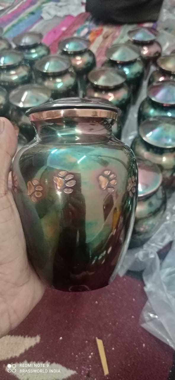 ब्रास राकू पेट पाव उत्कीर्ण पीईटी श्मशान कलश अंतिम संस्कार की आपूर्ति