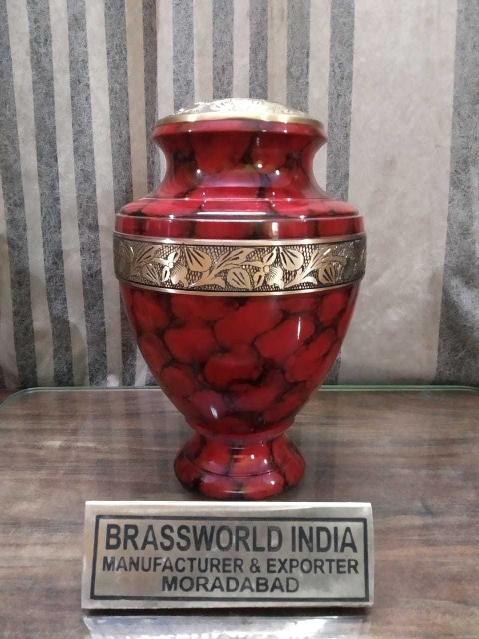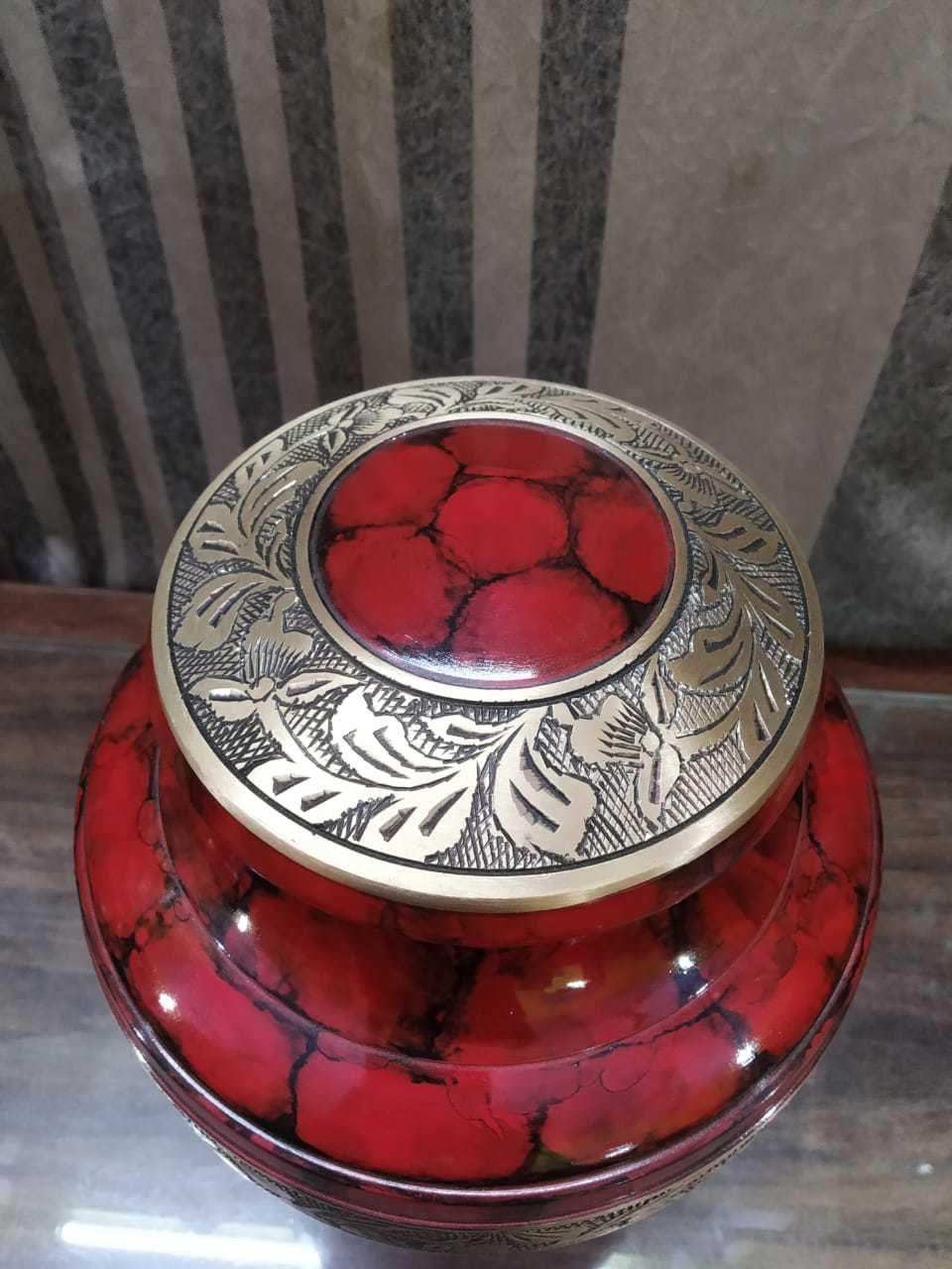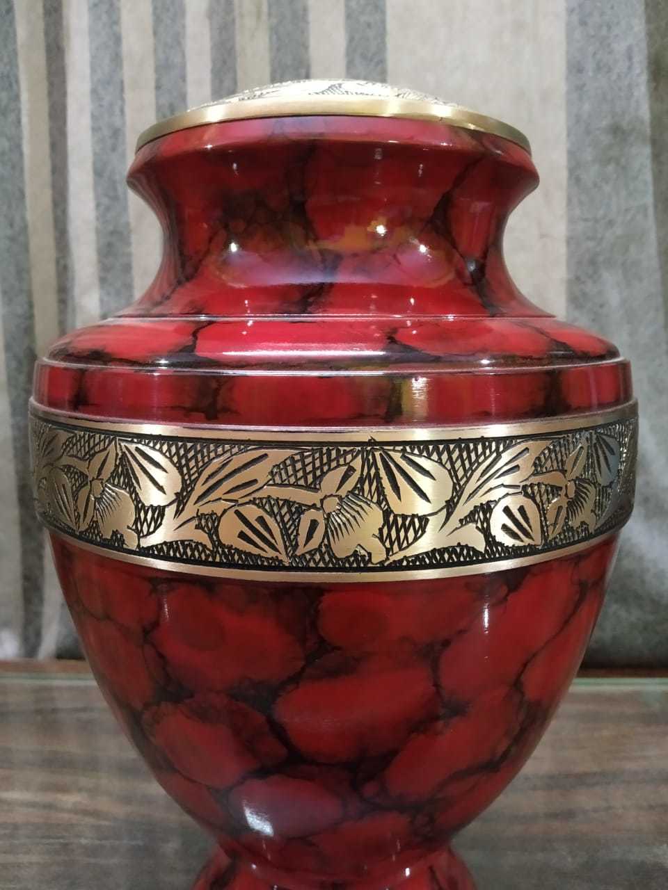 स्वर्ण उत्कीर्ण अंतिम संस्कार कलश अंतिम संस्कार की आपूर्ति के साथ पीतल लाल कलश