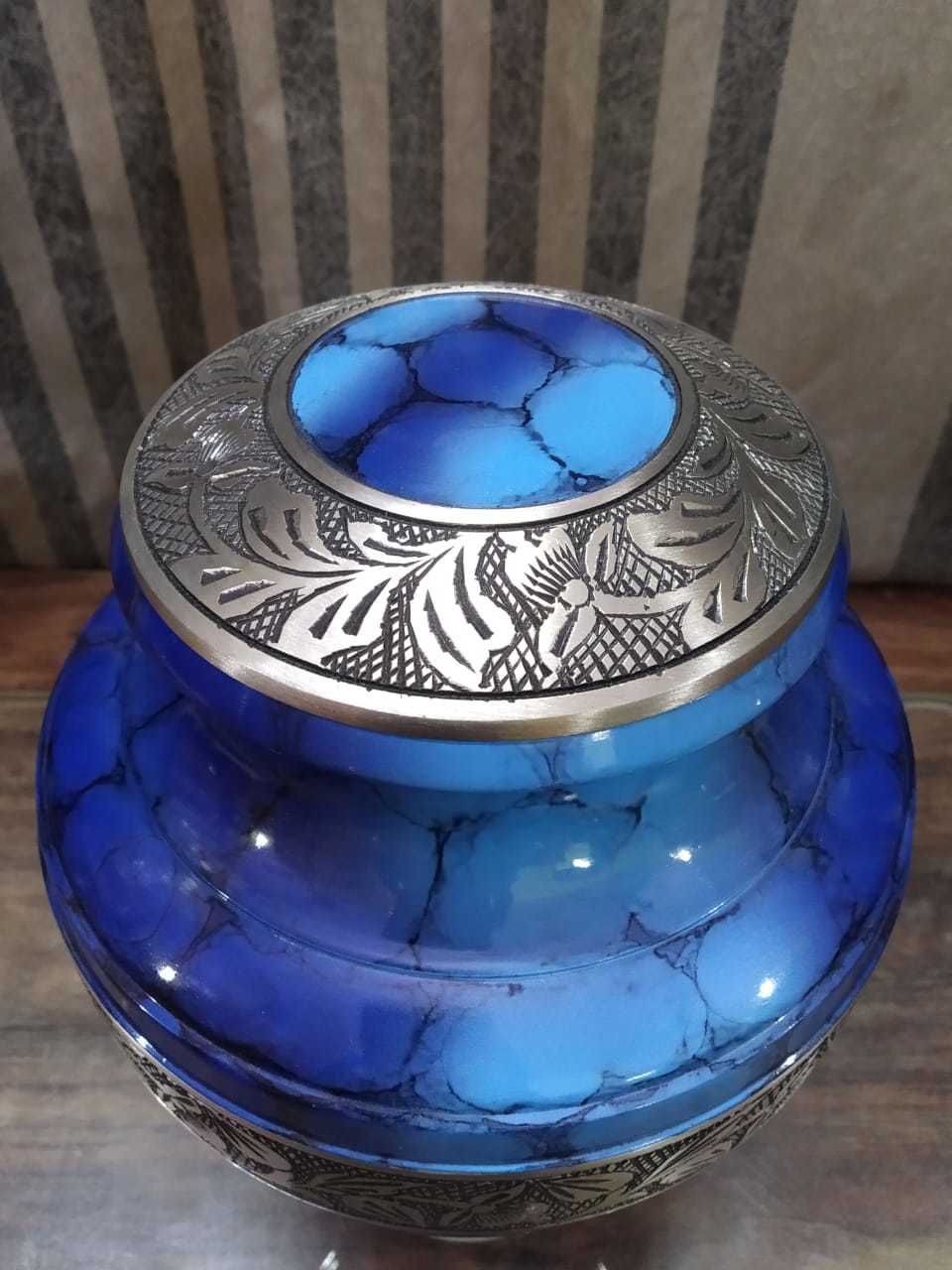 धातु पीतल का पूर्ण उत्कीर्ण श्मशान कलश
