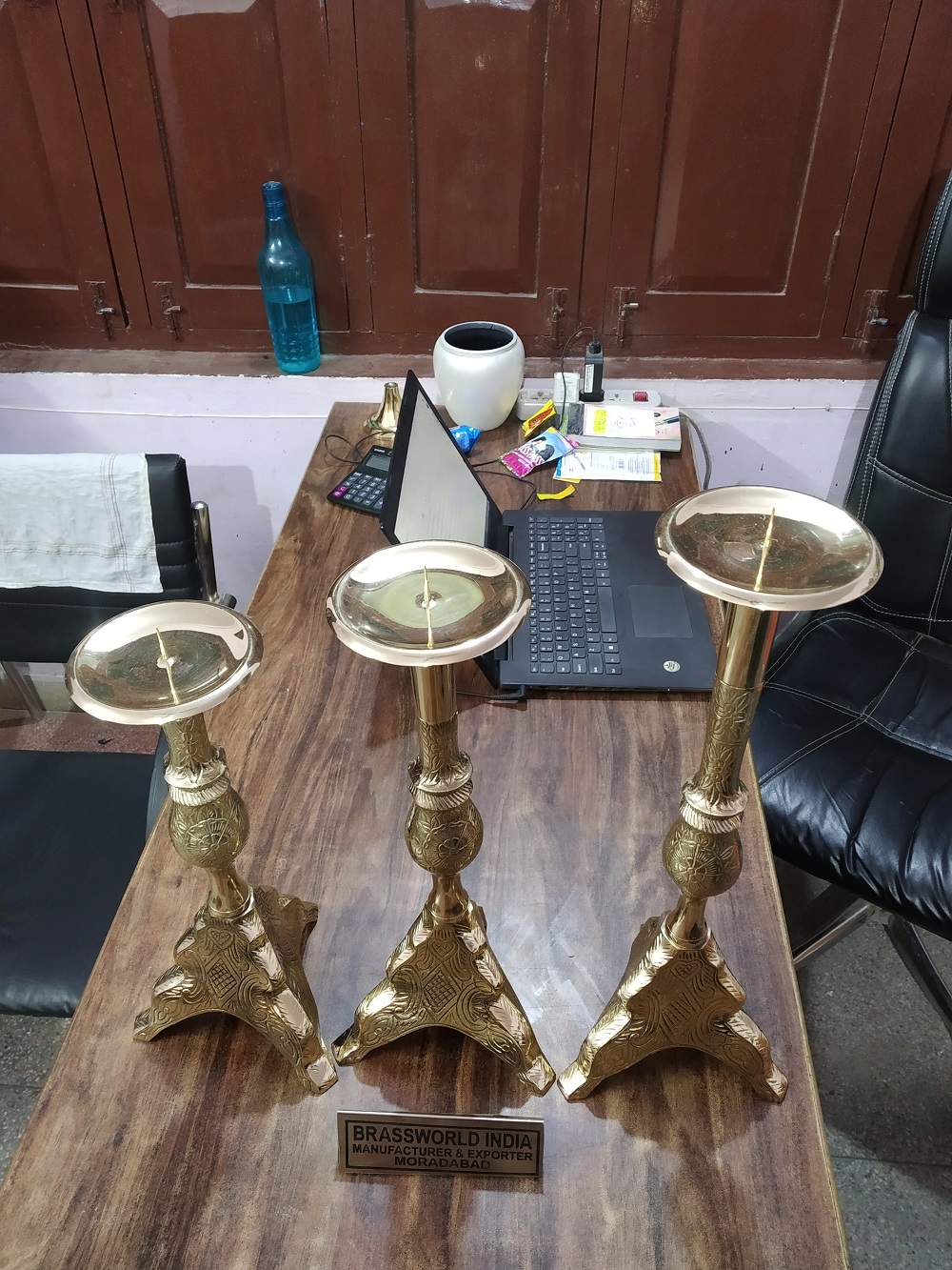 Explore in english - BRASS ROUND SHAPED CANDLE STAND CANDLE HOLDER