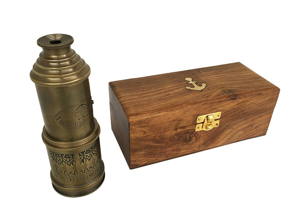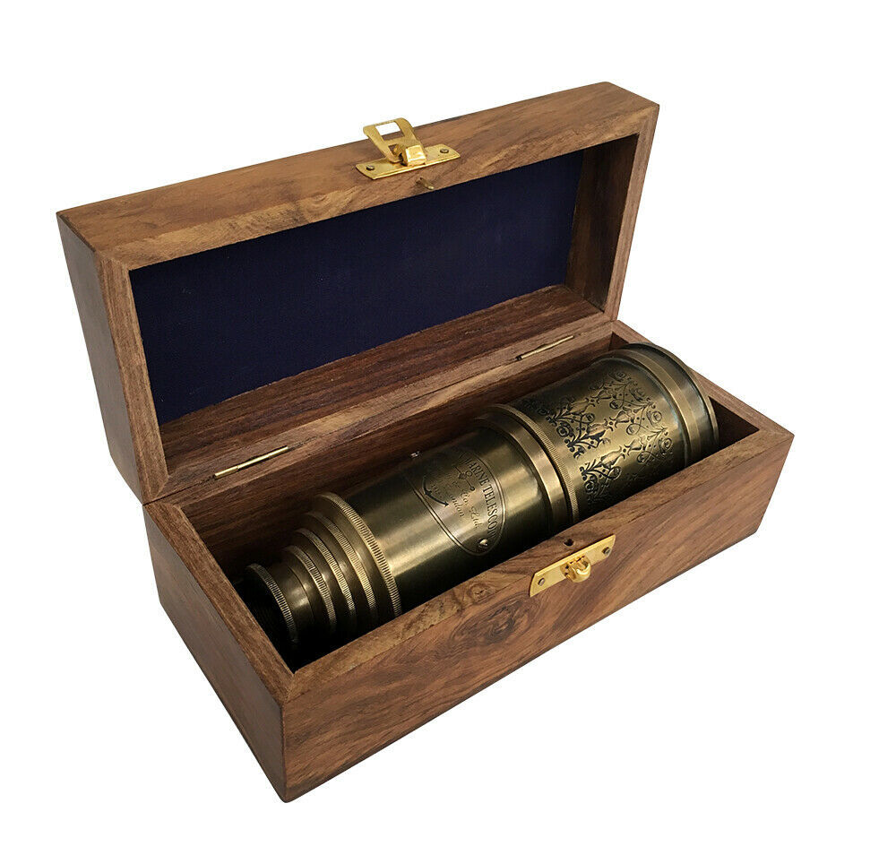 Explore in english - BRASS TELESCOPE WITH WOODEN BOX ANTIQUE STYLE