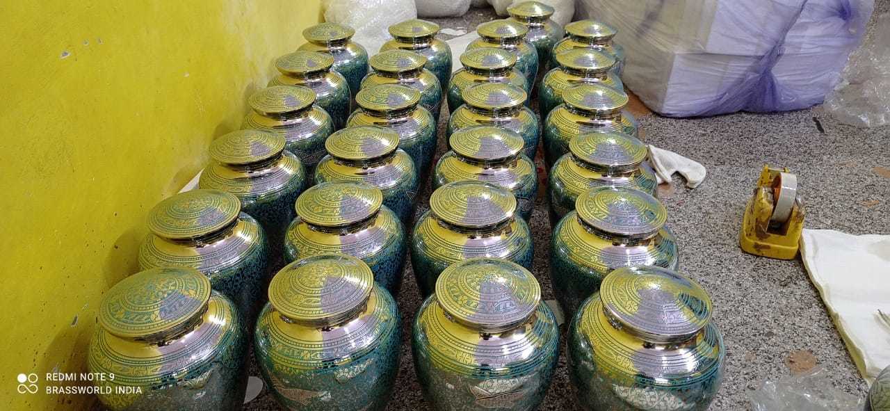 धातु पीतल का पूर्ण उत्कीर्ण श्मशान कलश