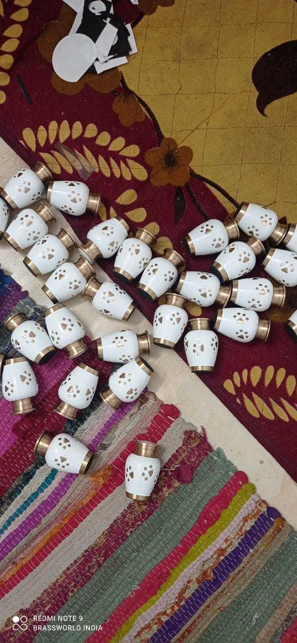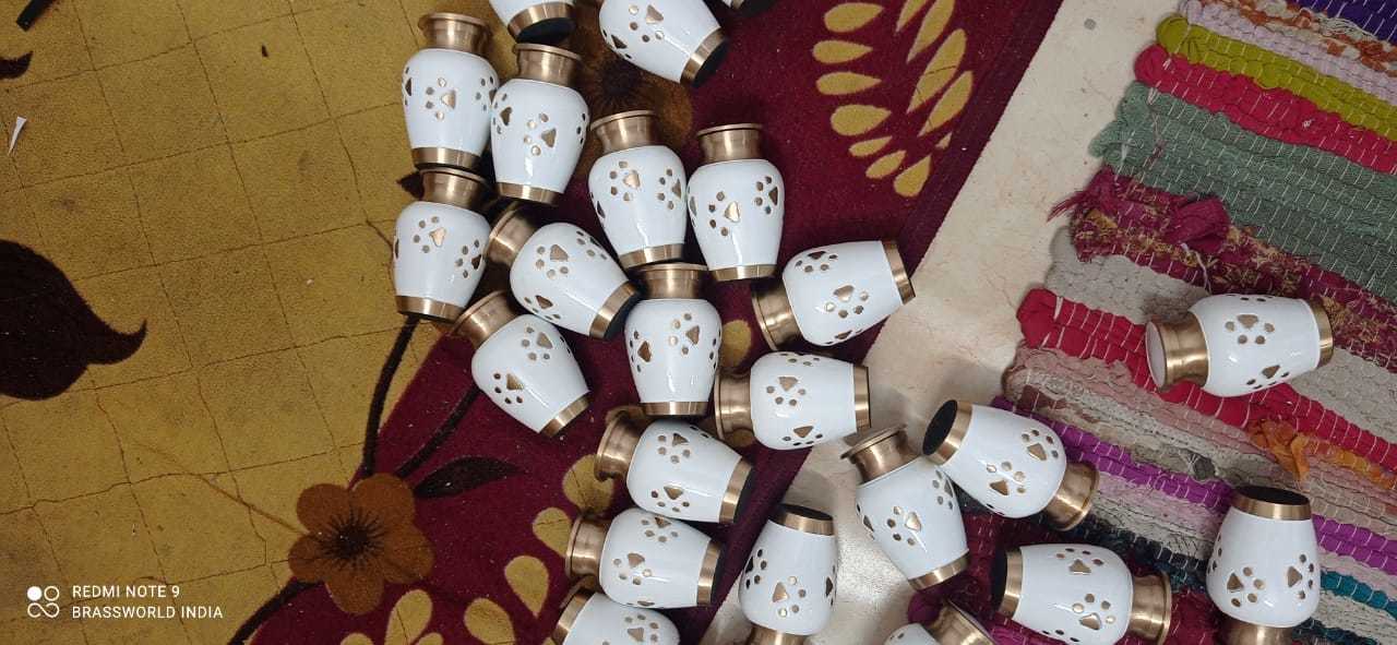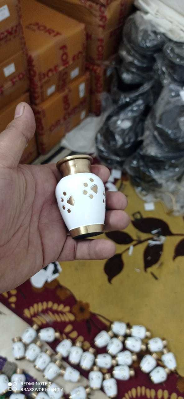 गोल्डन पेट पाव के साथ ब्रास व्हाइट उत्कीर्ण यादगार कलश