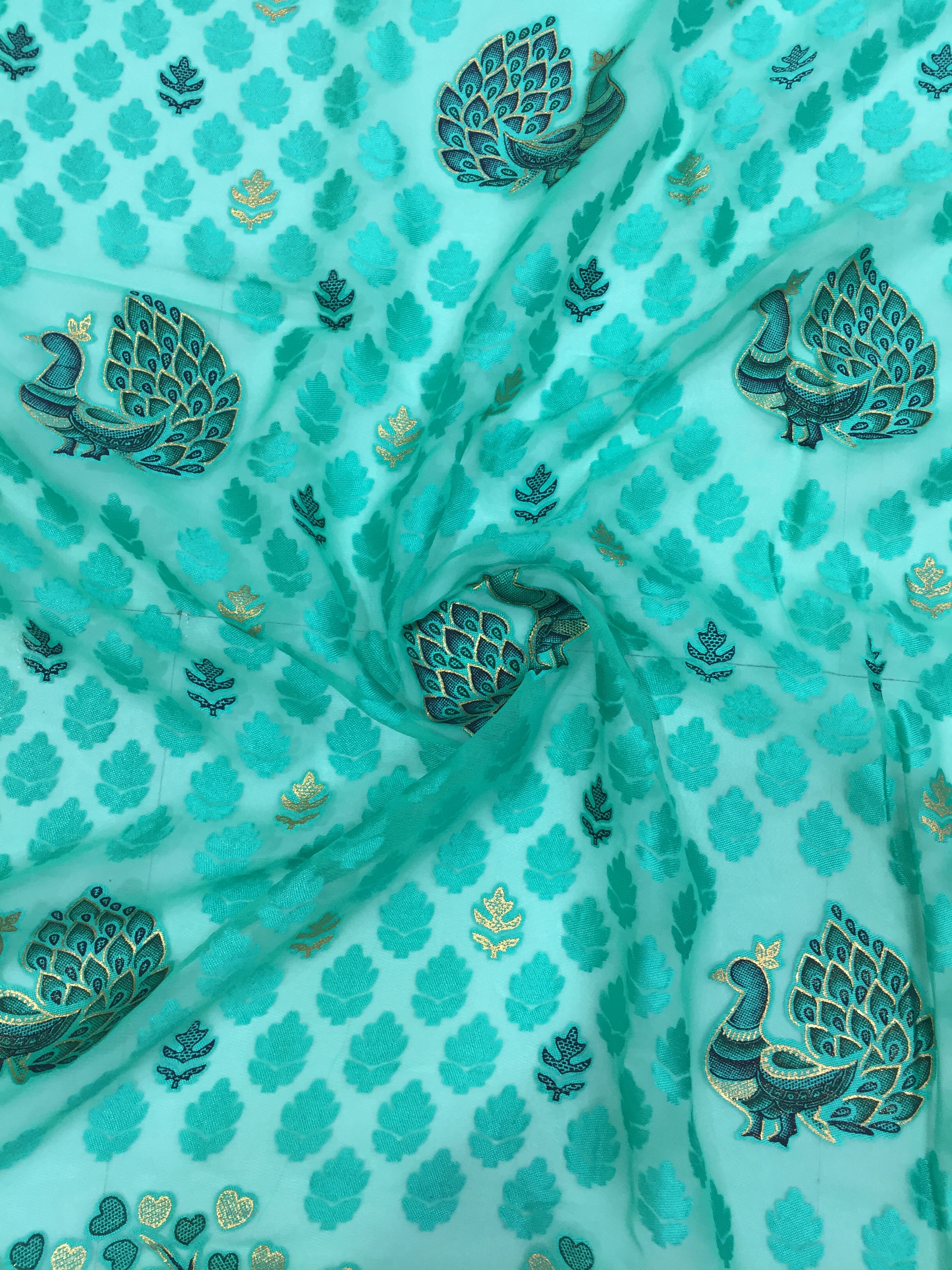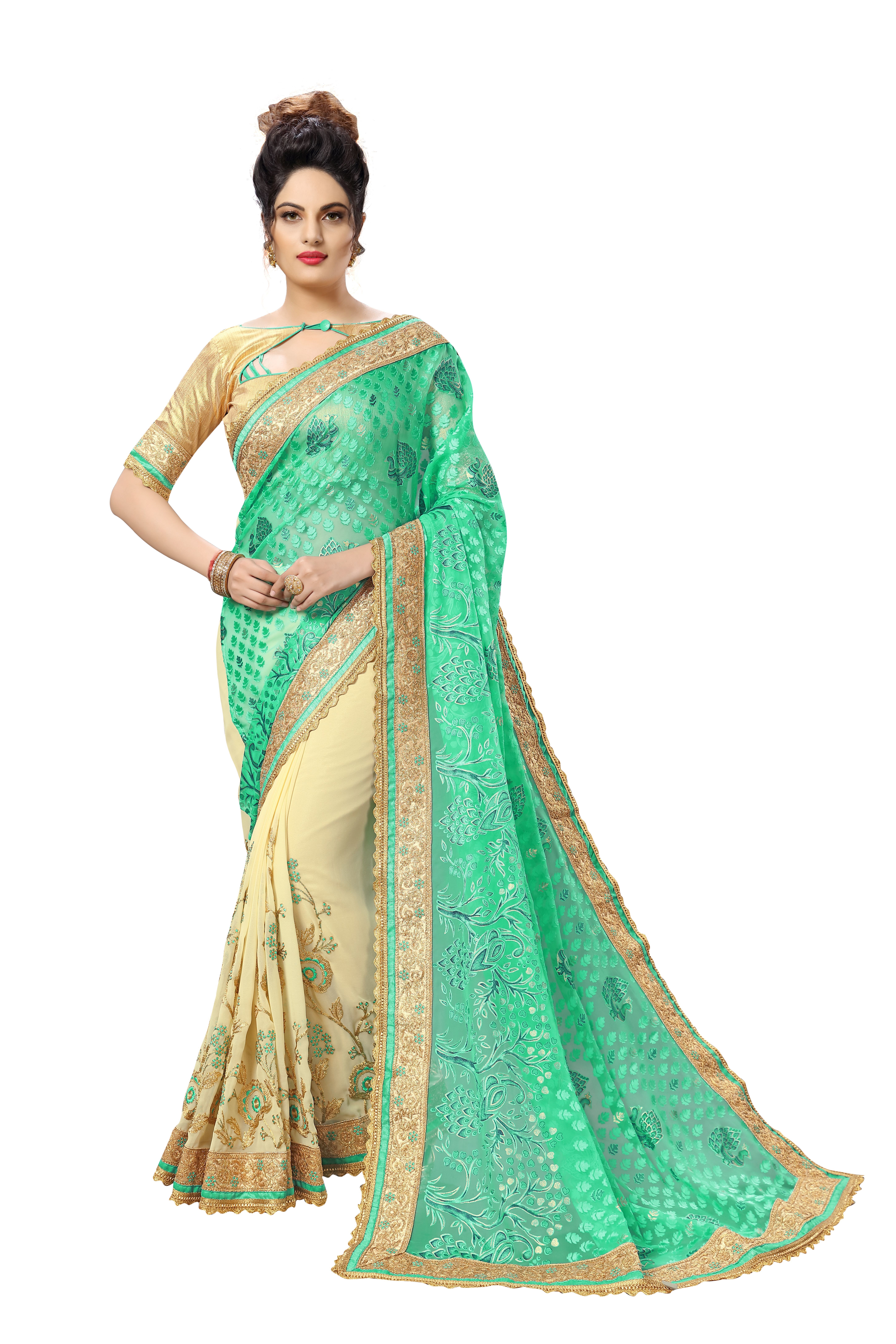 फ़िरोज़ा ब्रासो और जॉर्जेट कढ़ाई वाली साड़ी