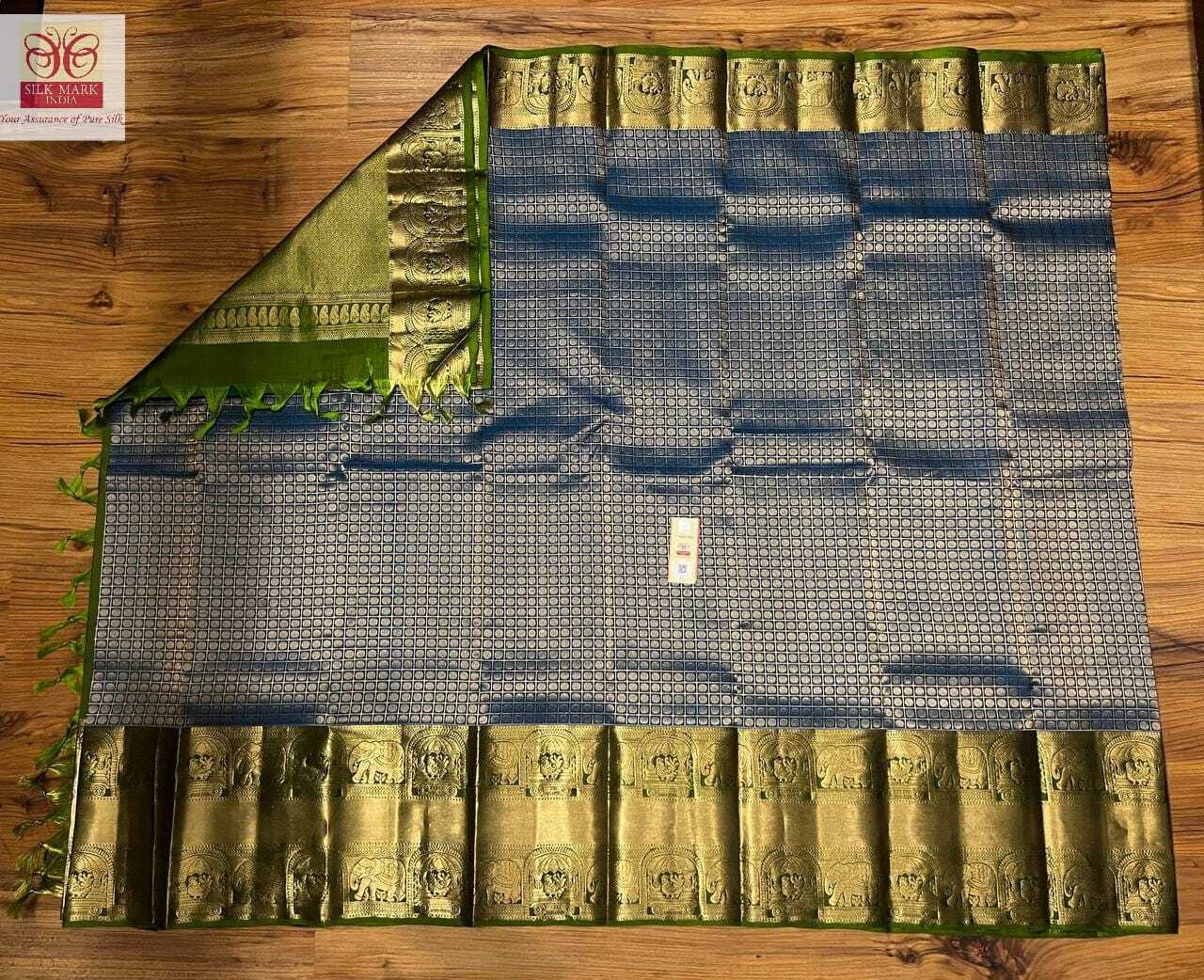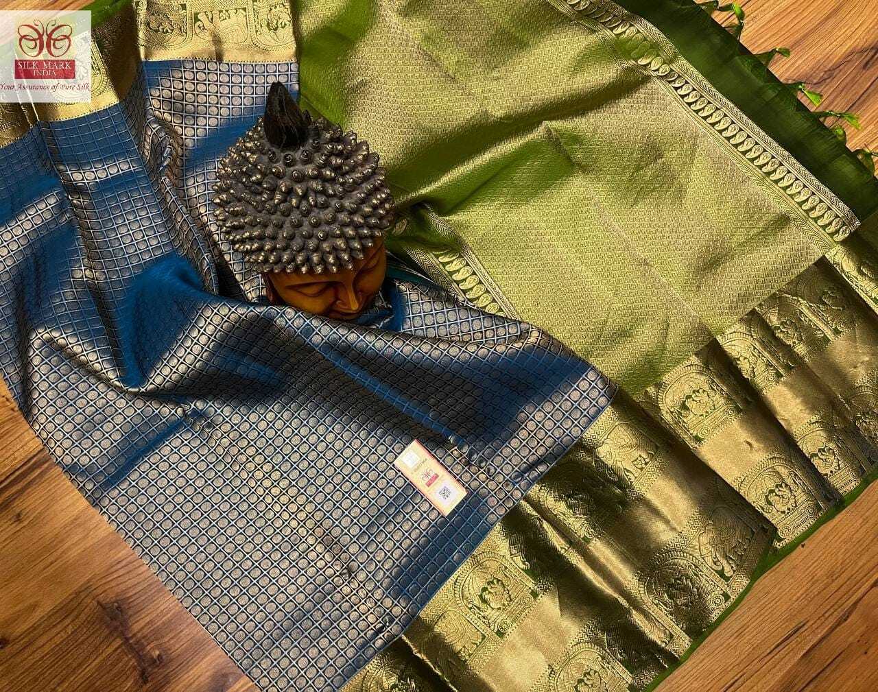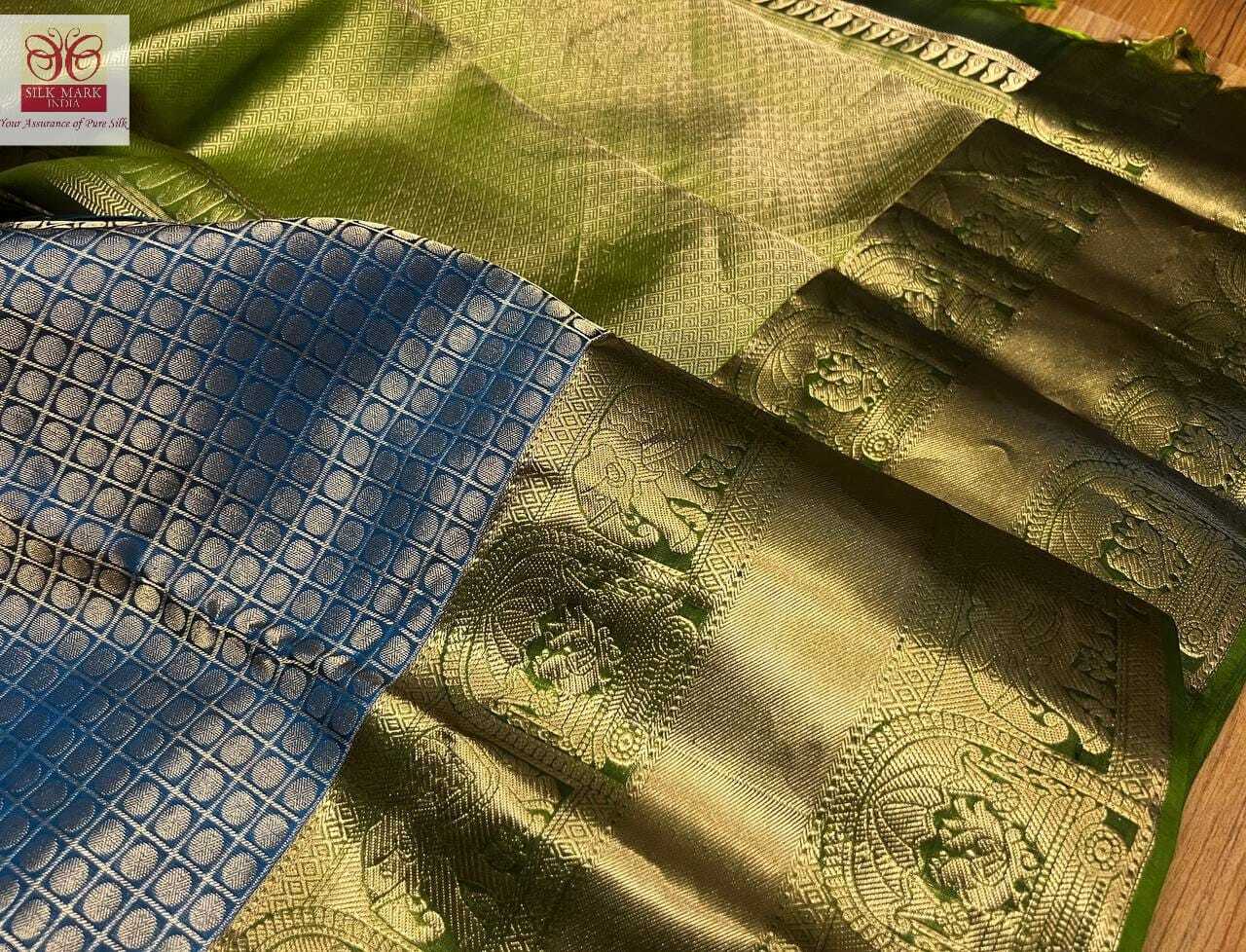 ब्लू ब्राइडल कांजीवरम सॉफ्ट सिल्क पेस्टेड टेस्ट