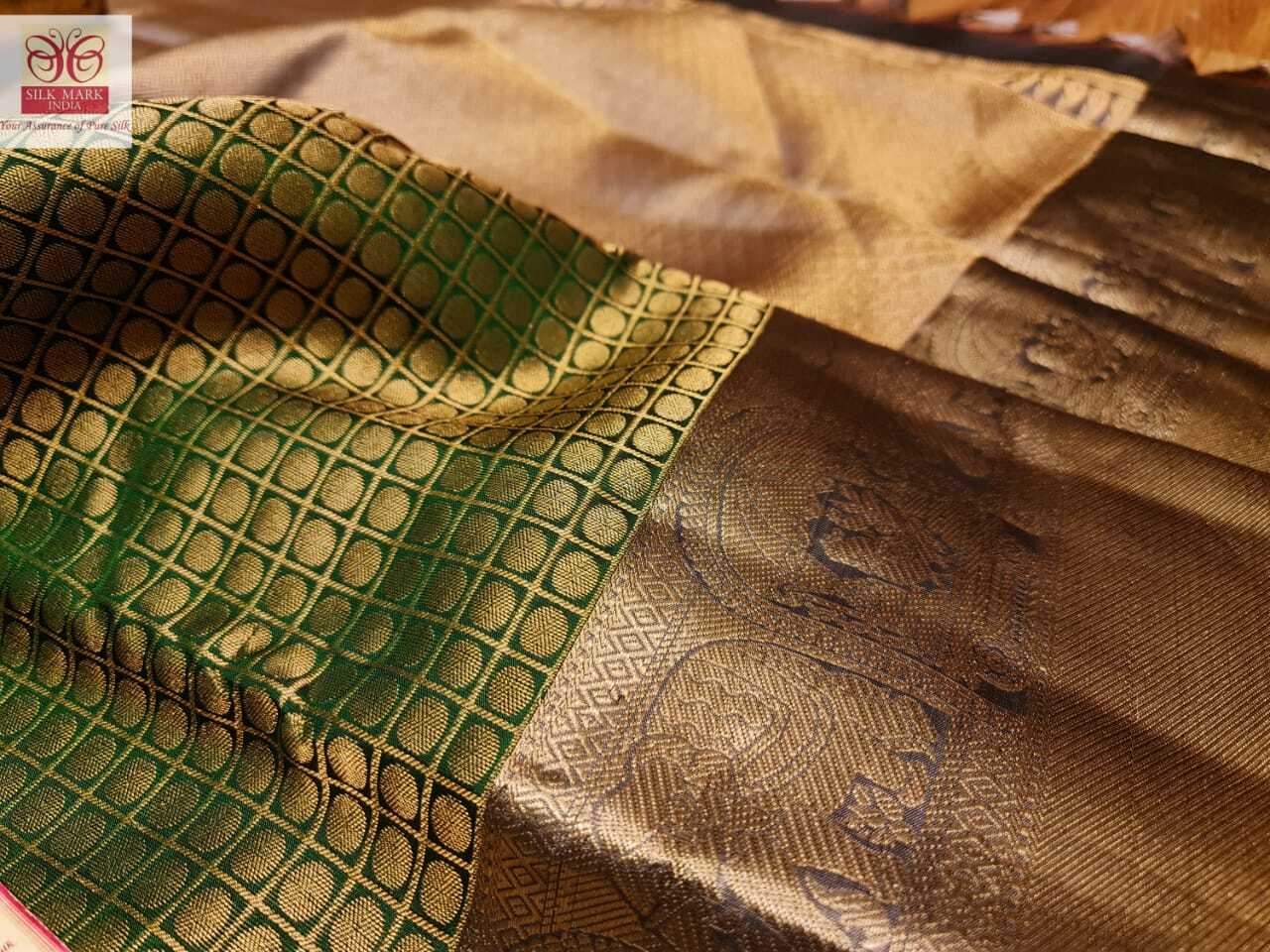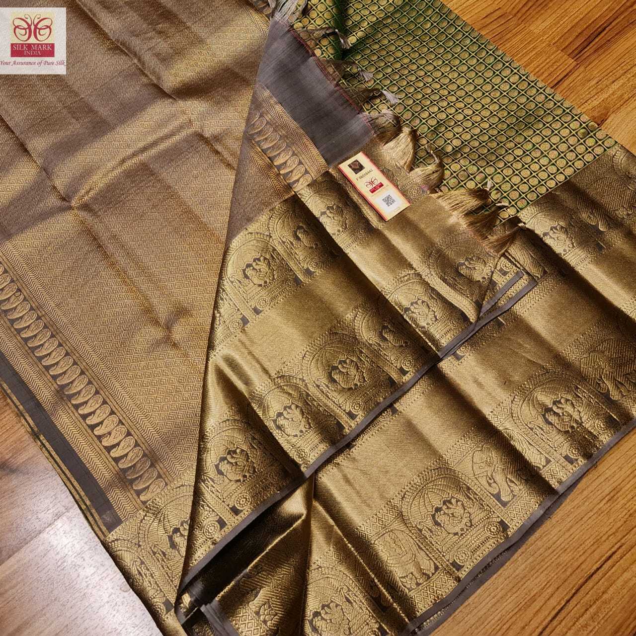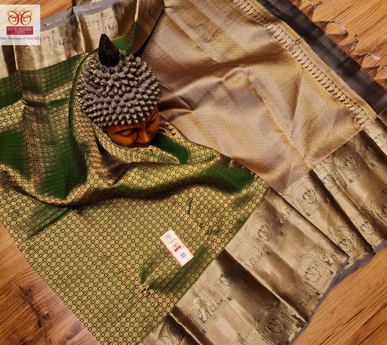 ग्रीन ब्राइडल वियर स्टाइल कांजीवरम सिल्क साड़ी