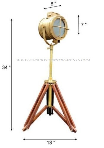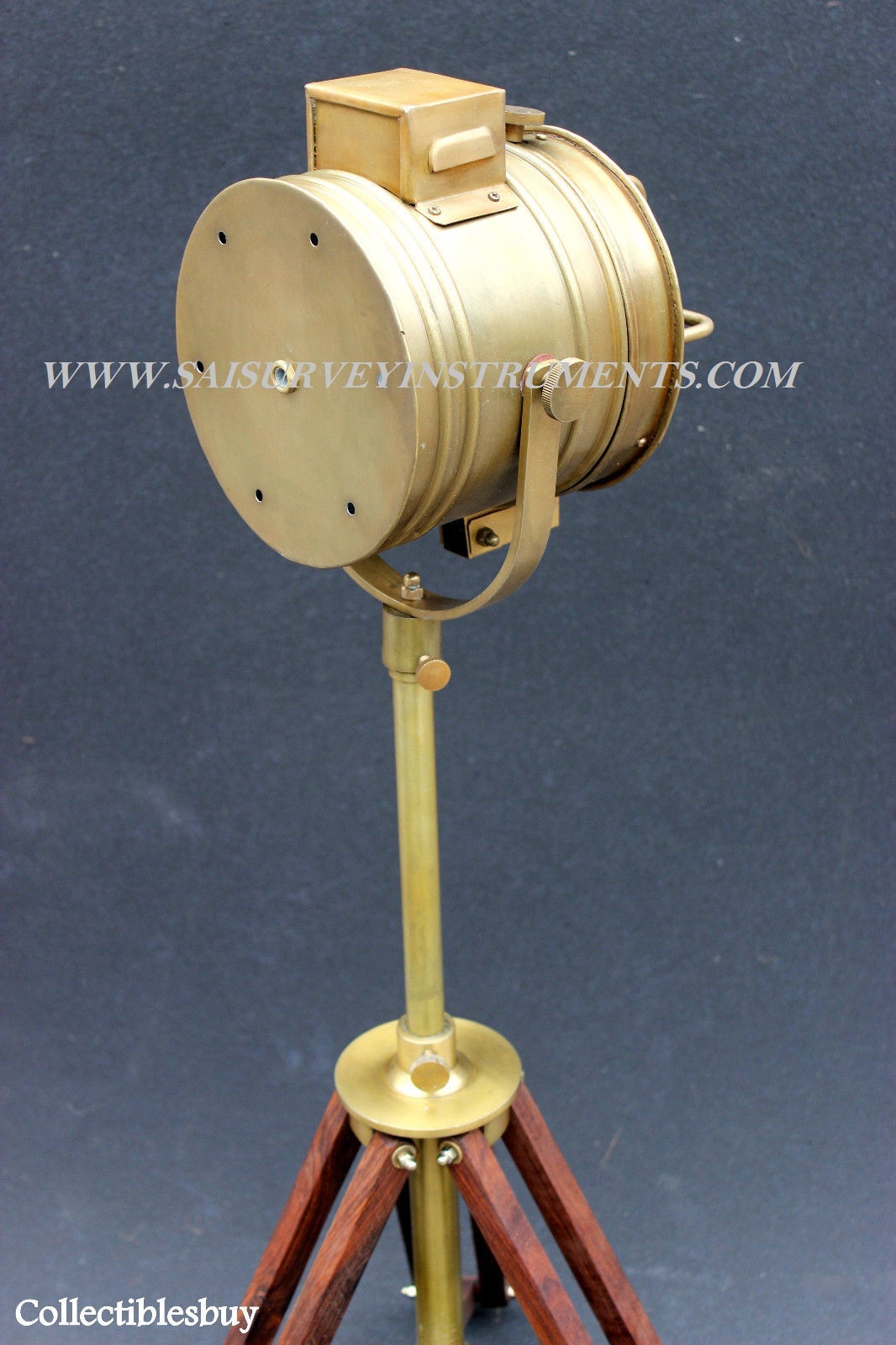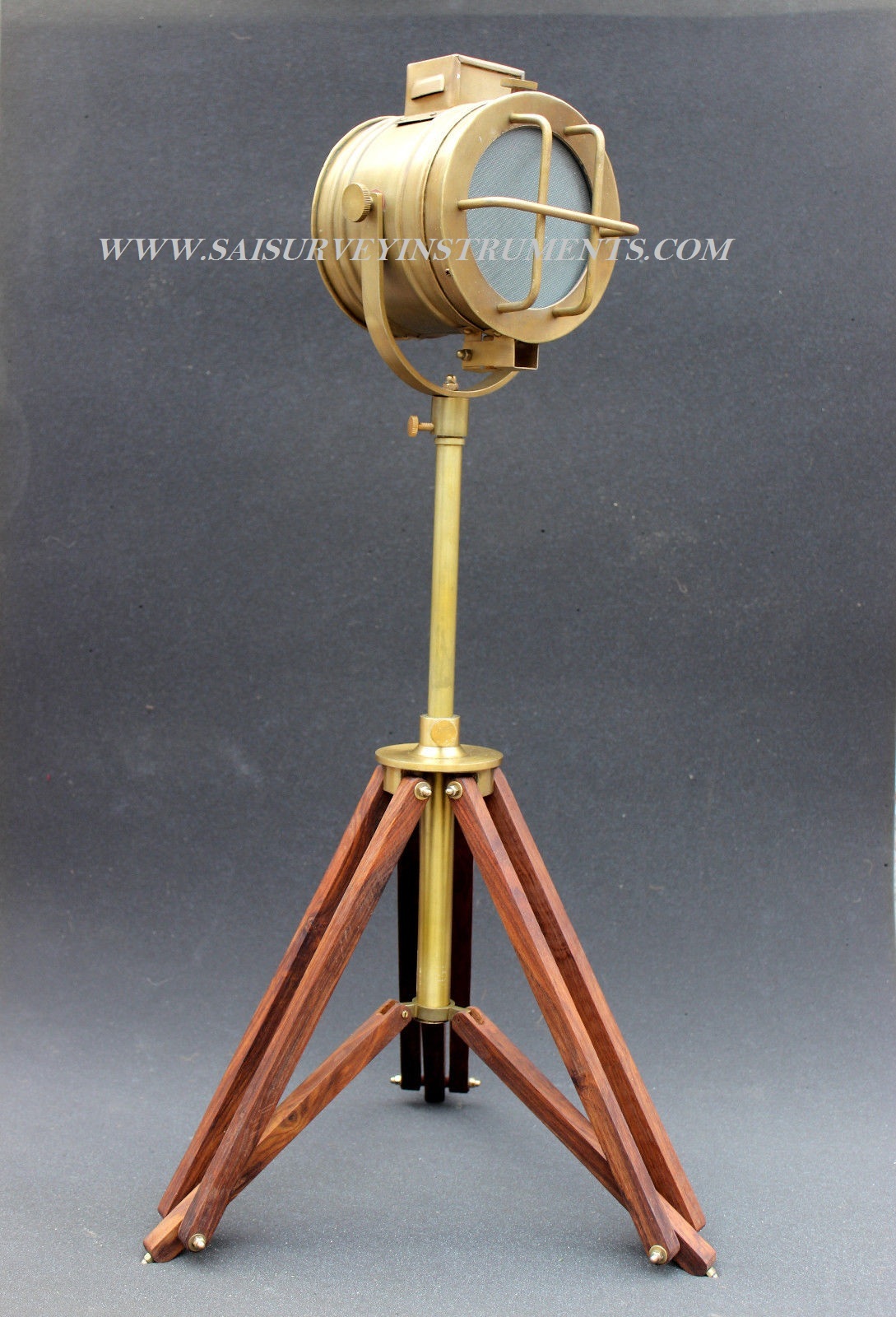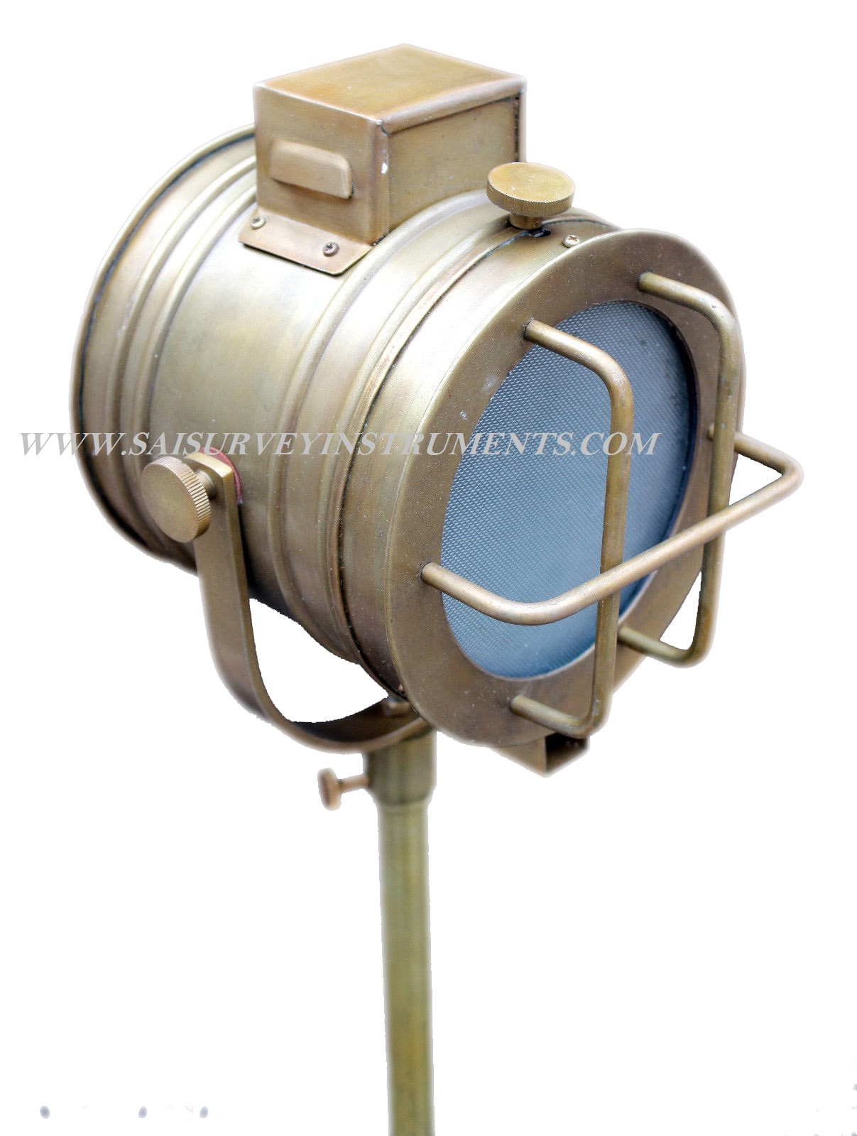 ट्राइपॉड स्टैंड के साथ ब्राउन एंटीक रॉयल मरीन स्पॉटलाइट - स्टैंड पर विंटेज लुक सर्चलाइट