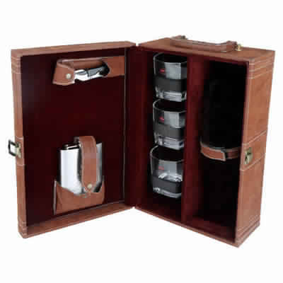 Explore in english - Portable Leather Bar Kit In Leather Case With 3 Glasses
