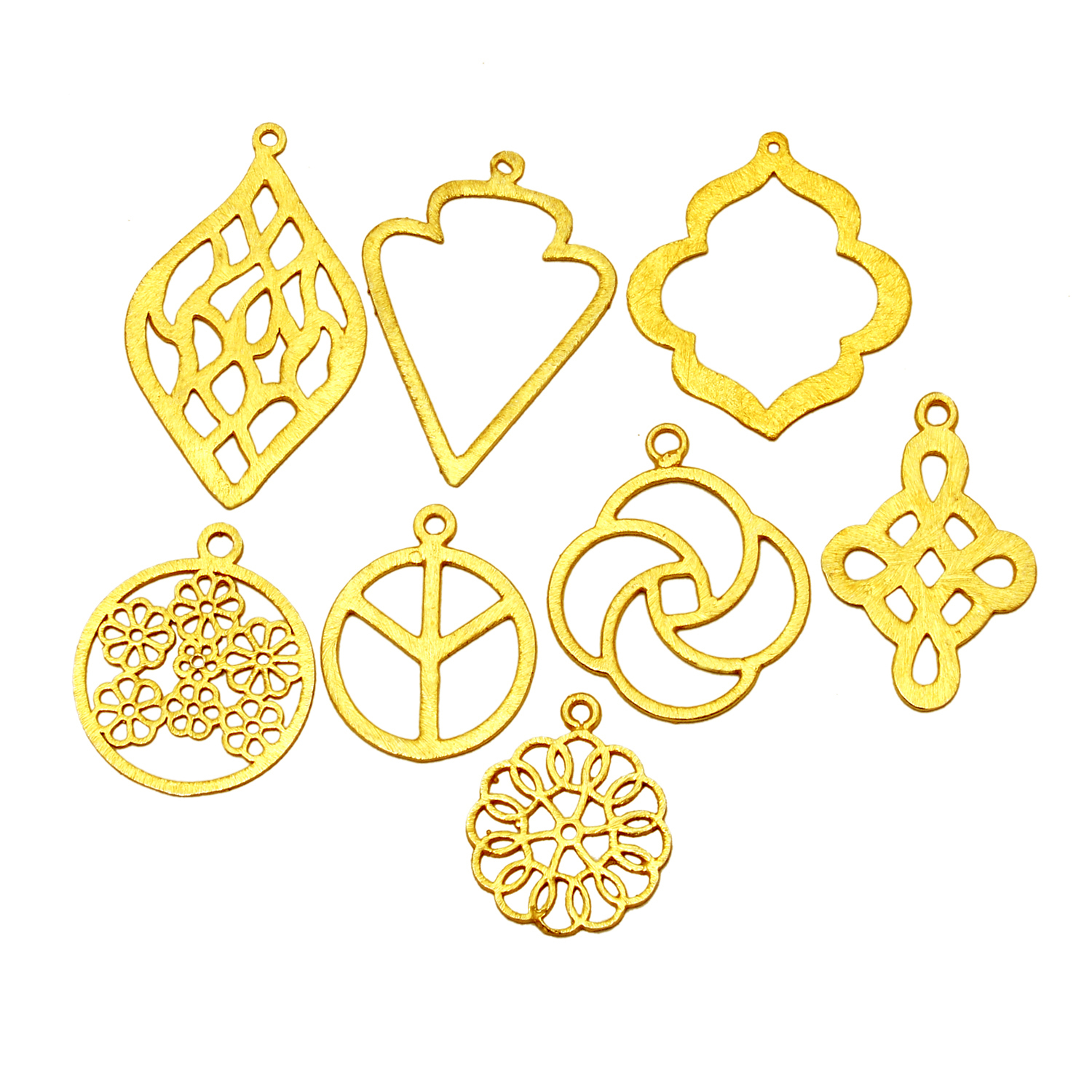 ब्रश्ड गोल्ड प्लेटेड मार्क्वेस शेप मेटल चार्म्स पेंडेंट