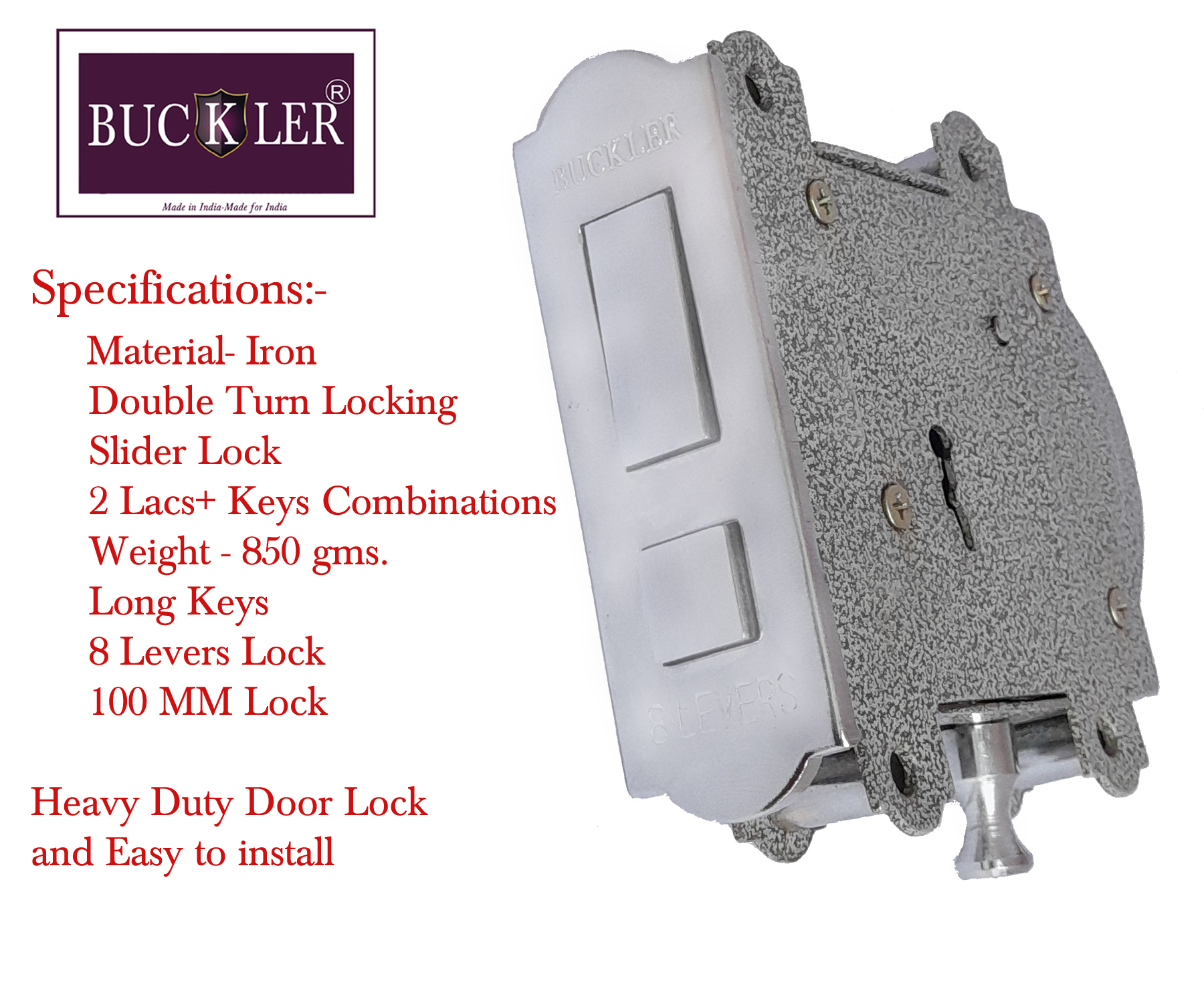 Buckler 100mm 8 लीवर आयरन डोर लॉक सेट