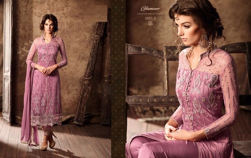 Explore in english - Buy Net & Satin Designer Suit Online