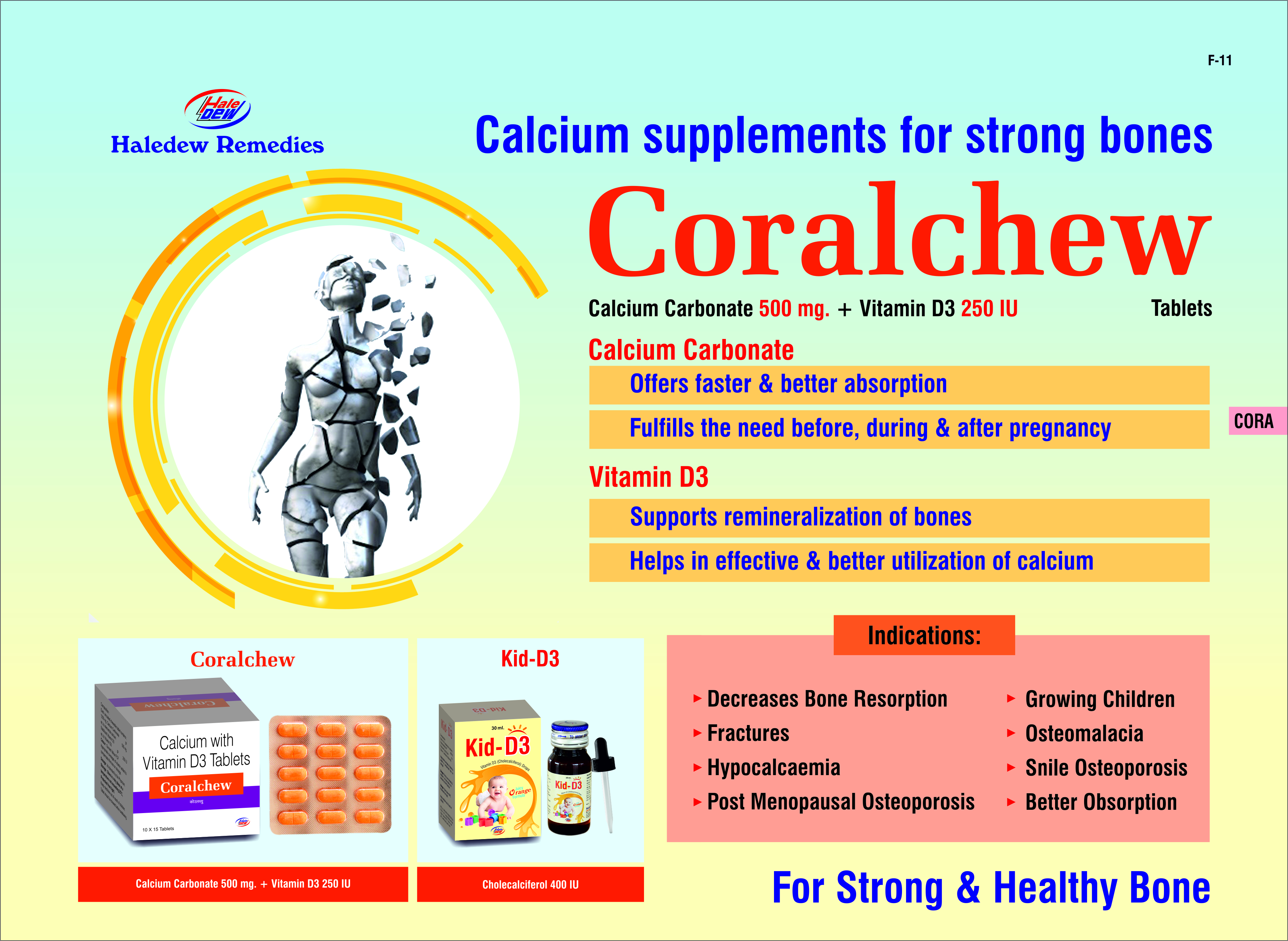 कैल्शियम कार्बोनेट 1250mg + विटामिन D3 250 I.u टैबलेट