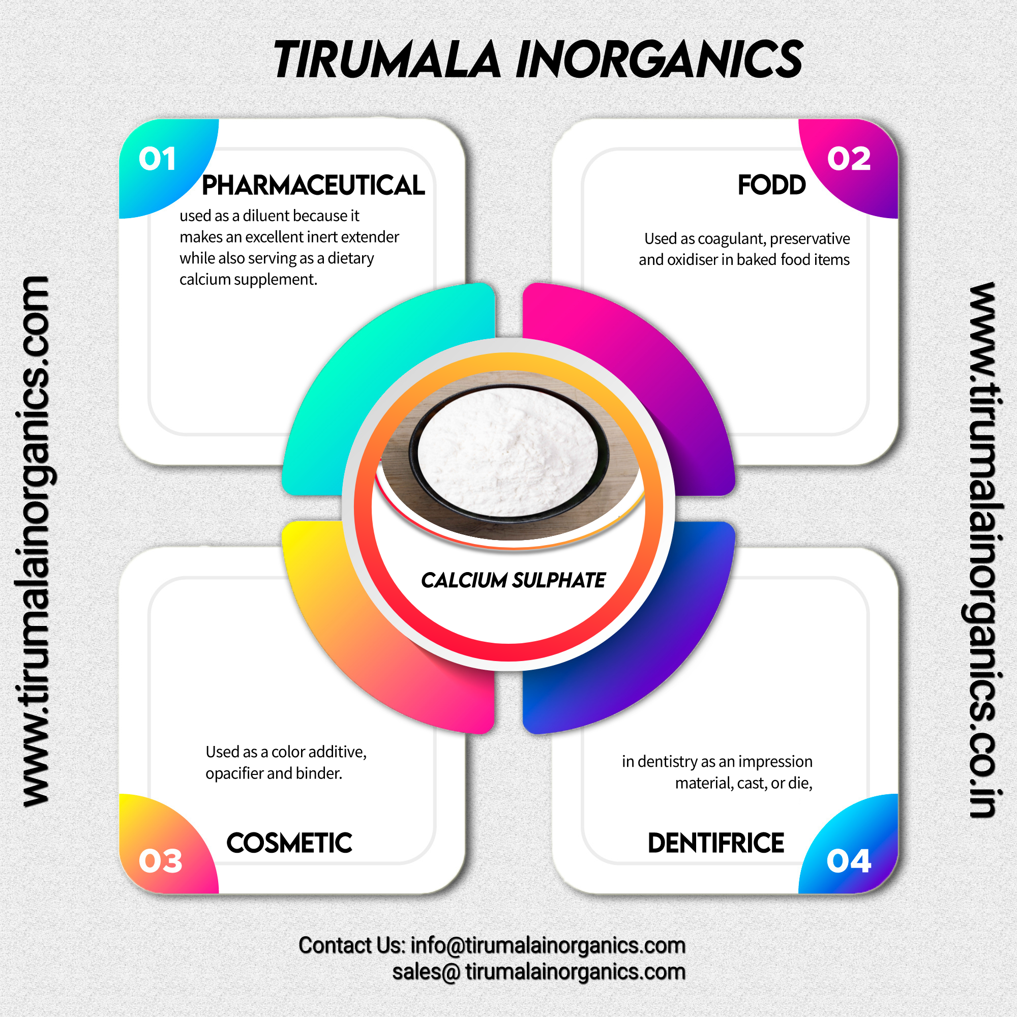 | उपयोग | Gypsum (natural mineral) or synthesized from calcium carbonate and sulfuric acid. |