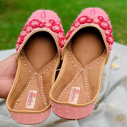 Explore in english - Candy Pink Spring Thread Embroidered Genuine Leather Juttis