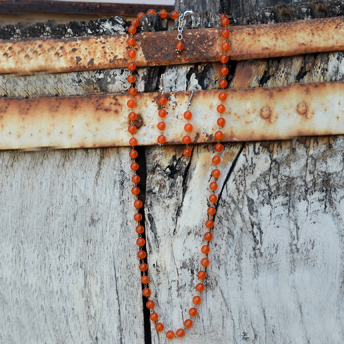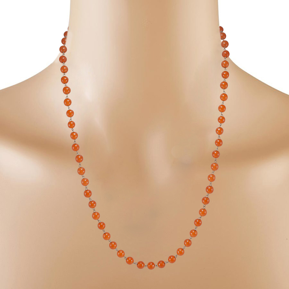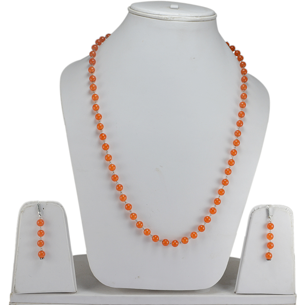 कार्नेलियन जेमस्टोन सिल्वर नेकलेस सेट Pg-156655 आकार: 0.6x47 Cm.