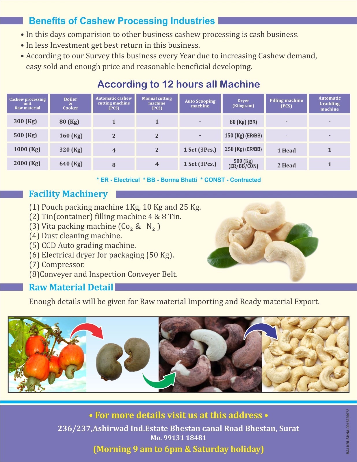 फ़ीनिक्स इंजीनियरिंग, 2014 में गुजरात के सूरत में स्थापित, भारत में काजू प्रसंस्करण मशीन का टॉप निर्माता,वितरक,आपूर्तिकर्ता है। फ़ीनिक्स इंजीनियरिंग ट्रेड इंडिया के सूचीबद्ध उत्पादों के सत्यापित और विश्वसनीय विक्रेताओं में से एक है। आपूर्ति और व्यापार के अपने व्यापक अनुभव के साथ, फ़ीनिक्स इंजीनियरिंग ने उच्च गुणवत्ता आदि के साथ बाजार में अपने लिए एक प्रतिष्ठित नाम बनाया है। ग्राहक केंद्रित दृष्टिकोण पर ध्यान केंद्रित करते हुए, फ़ीनिक्स इंजीनियरिंग की अखिल भारतीय उपस्थिति है और पूरे देश में एक विशाल उपभोक्ता आधार को पूरा करता है। फ़ीनिक्स इंजीनियरिंग से ट्रेड इंडिया के गुणवत्ता-सुनिश्चित उत्पादों () को थोक में खरीदें।