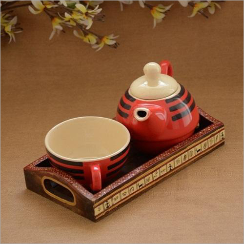 लकड़ी के बेस के साथ सिरैमिक सिंगल पॉट