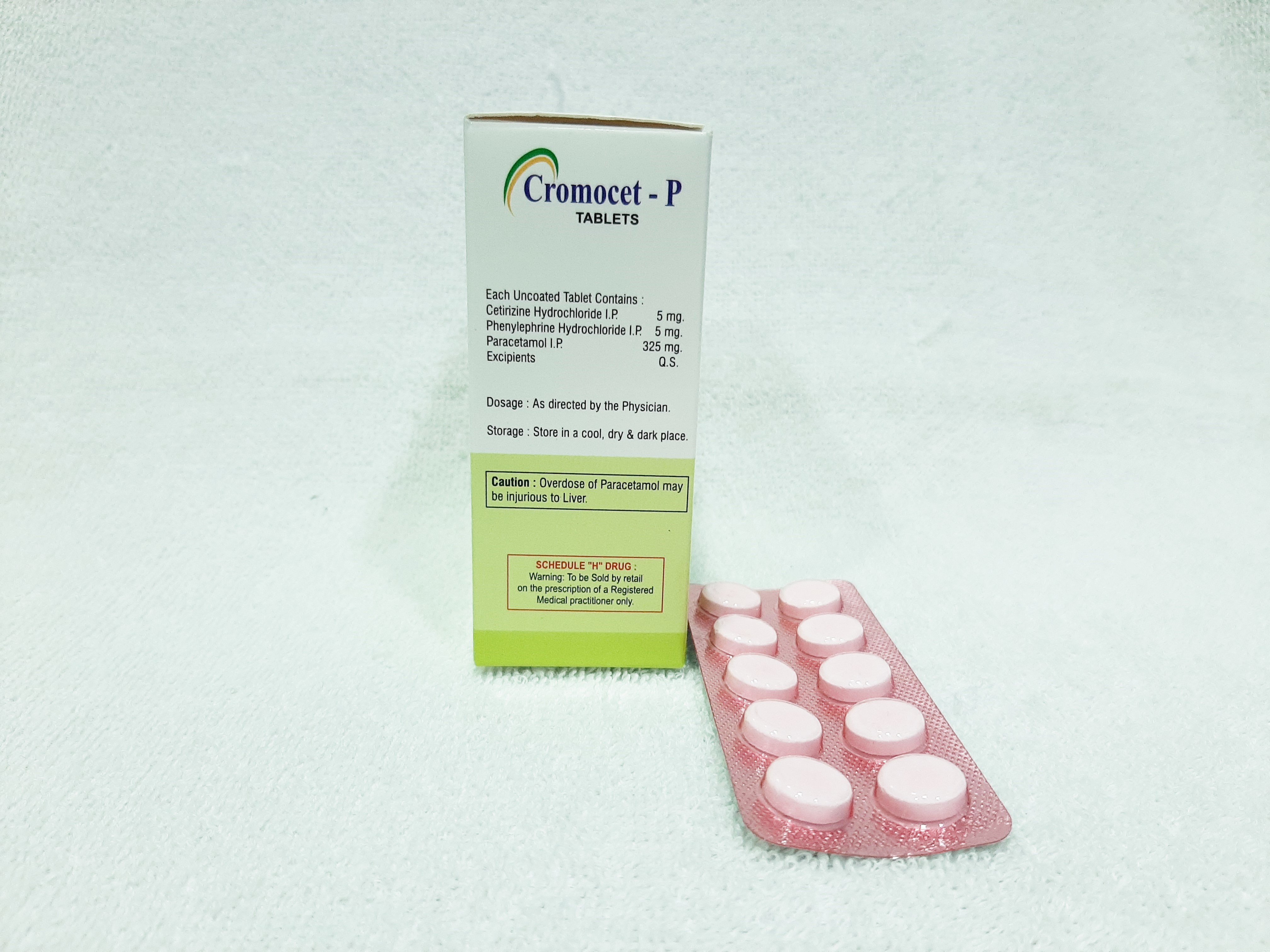 सेटीरिज़िन हाइड्रोक्लोराइड, फेनिलफ्राइन हाइड्रोक्लोराइड और पेरासिटामोल टैबलेट कैस नंबर: Tp70236