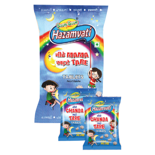 | अतिरिक्त सामग्री | CHAND: Jeera, Kala Namak, Iodised Salt, Sudh Nausadar, Citric Acid, Kali Mirch, Sugar, Glazing Agent, Permitted Colour & Flavour. TARE: Jeera, Kala Namak, Lodised Salt, Saunf, Sudh Nausadar, Citric Acid, Amchur, Kali Mirch, Pipal, Sugar, Starch, Glazing Agent, Permitted Colour & Flavour. |