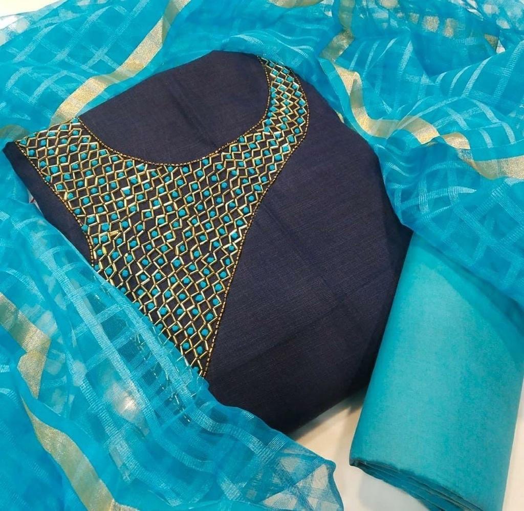 Explore in english - Chanderi Net Dress Material