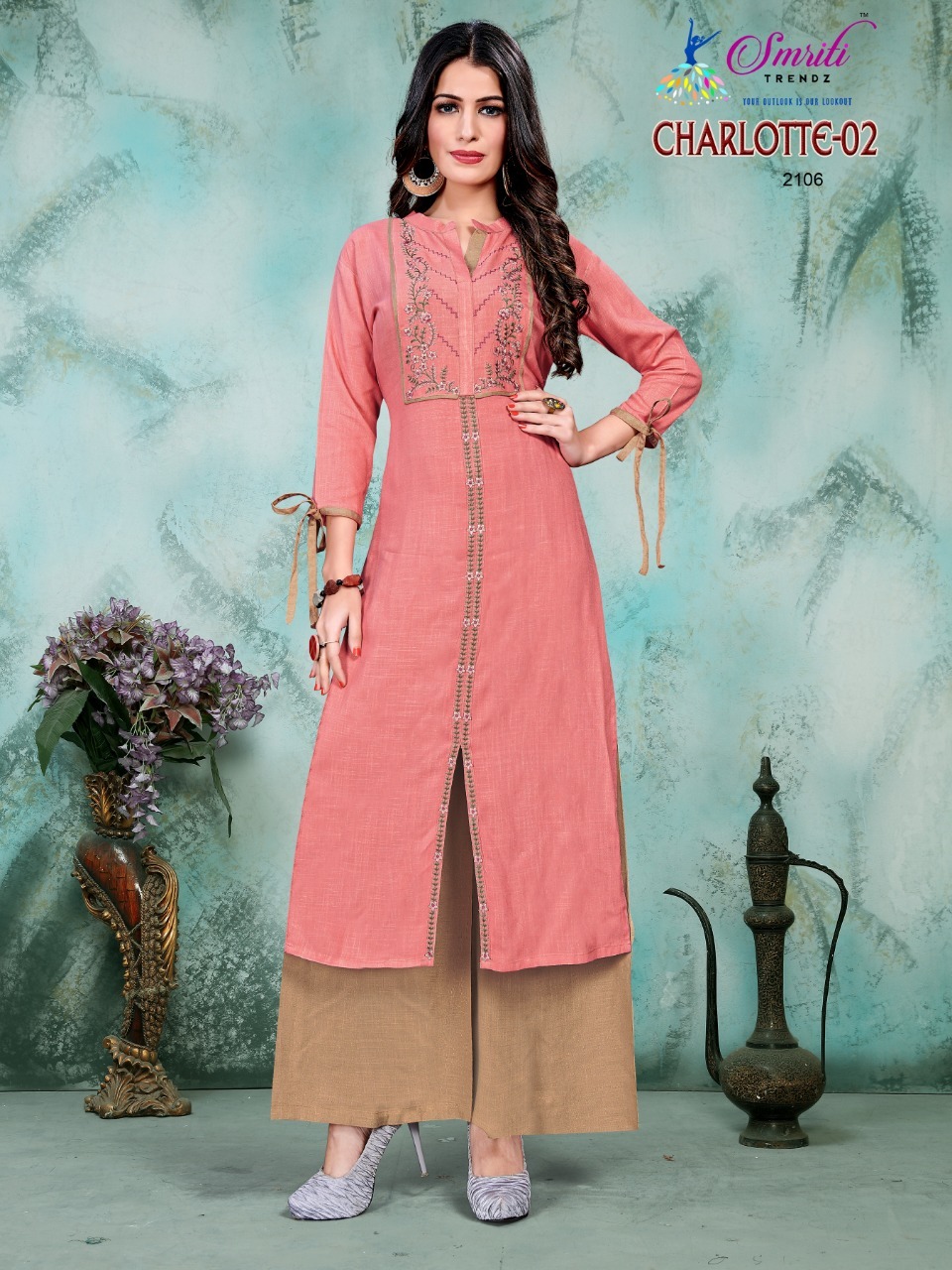 ड्राई क्लीनिंग चार्लोट 2 डिज़ाइनर रेयन कशीदाकारी कुर्तियां और प्लाज़ो