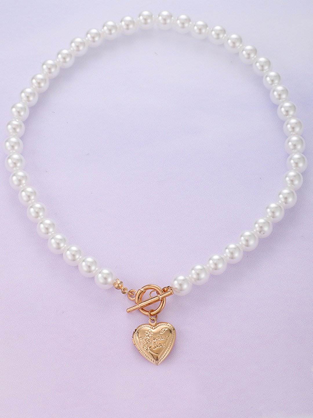 Explore in english - Gold Plated Pearl Drop Heart Pendant Necklace