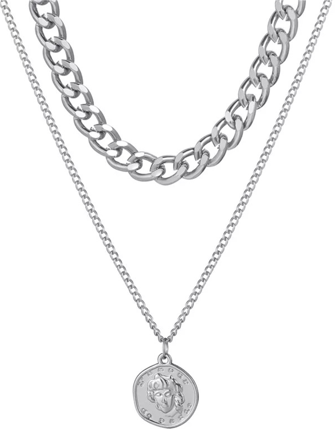 Explore in english - Silver Plated Double Layered Vintage Coin Pendant Necklace